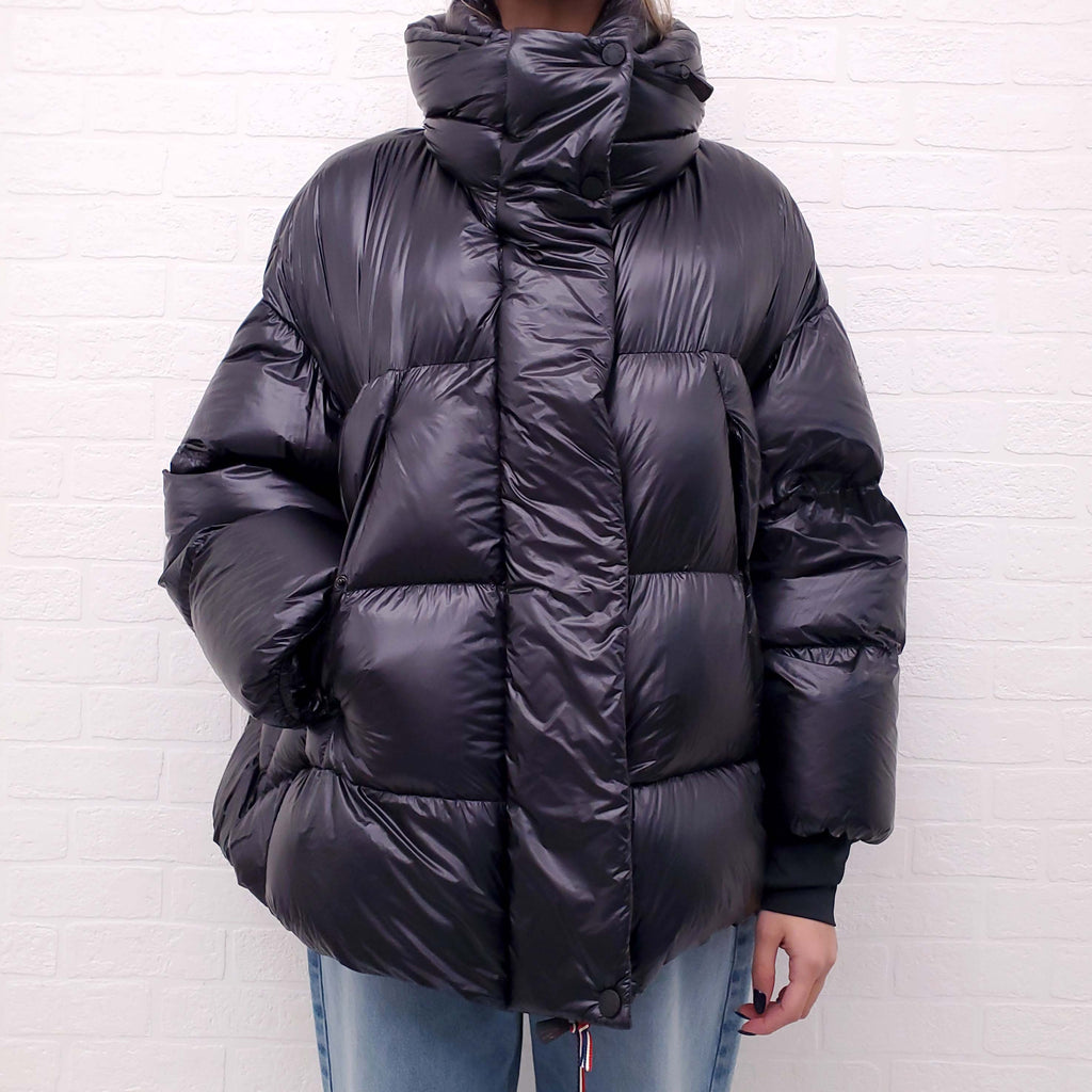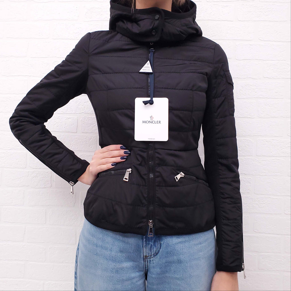 MONCLER BLACK LIGHT PUFFER JACKET WITH HOOD AND ZIPPERS - SIZE 1/S