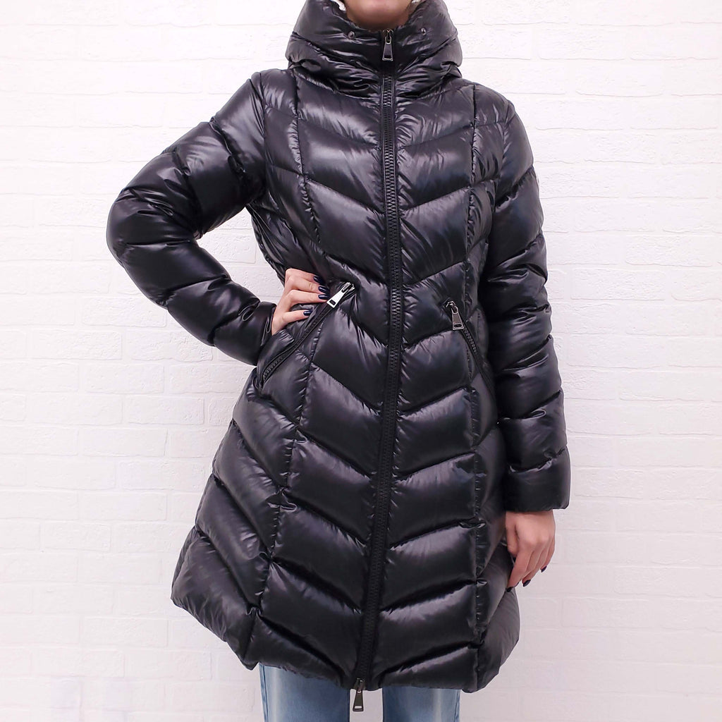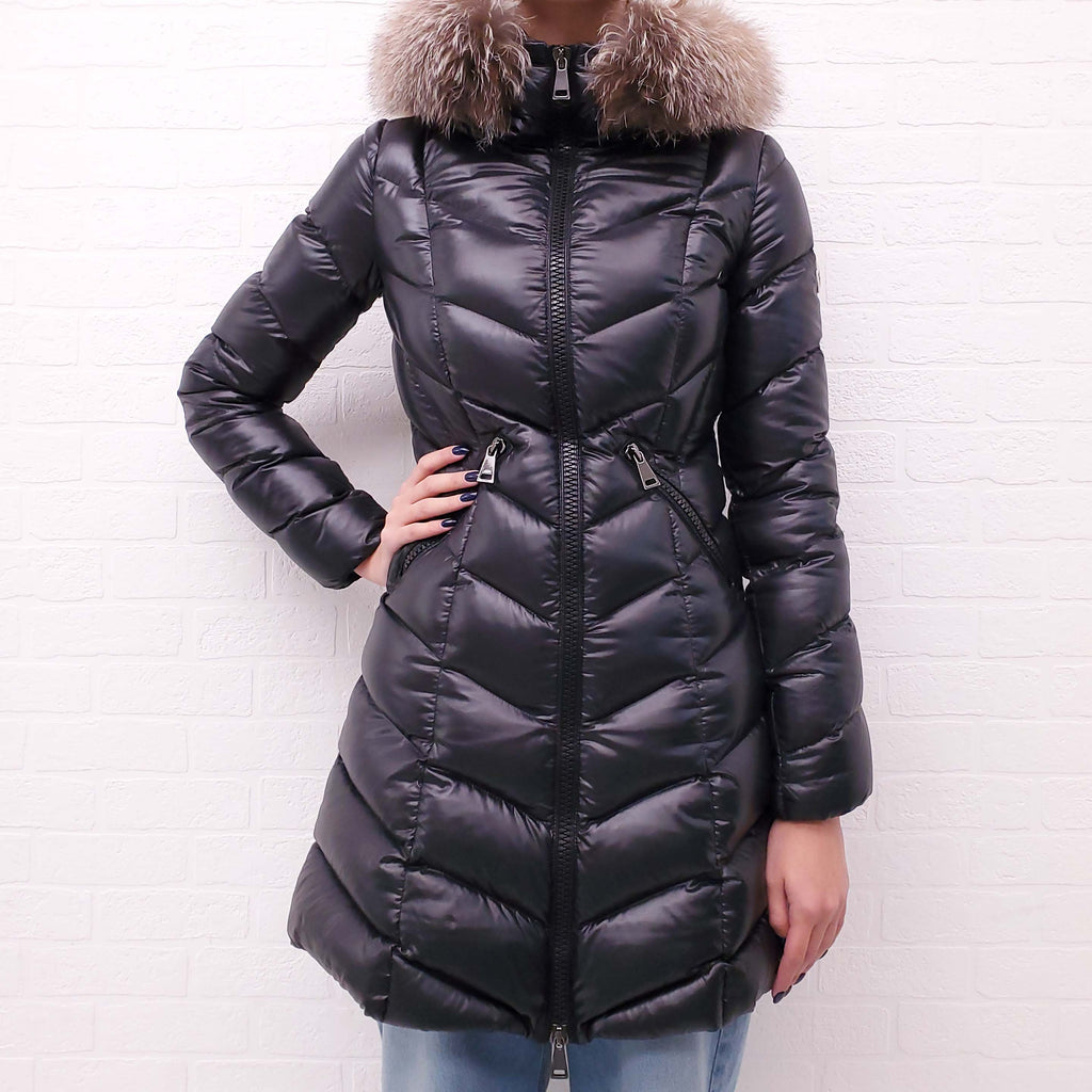 MONCLER BLACK LONG PUFFER JACKET WITH FUR AND LOGO - SIZE 0/XS