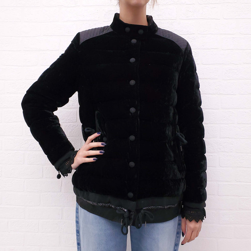 MONCLER BLACK VELVET PUFFER JACKET - SIZE 3/L