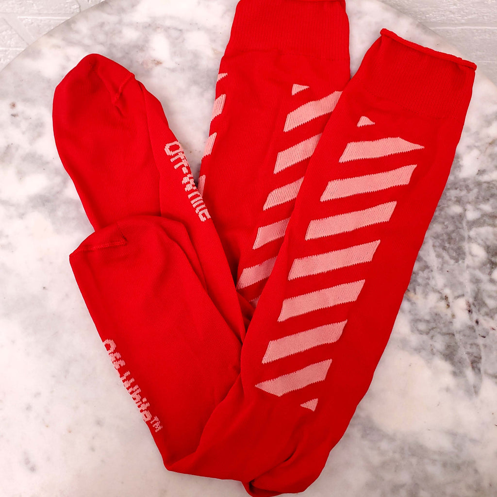OFF WHITE RED SOCKS WITH PINK STRIPE DETAIL - SIZE O/S