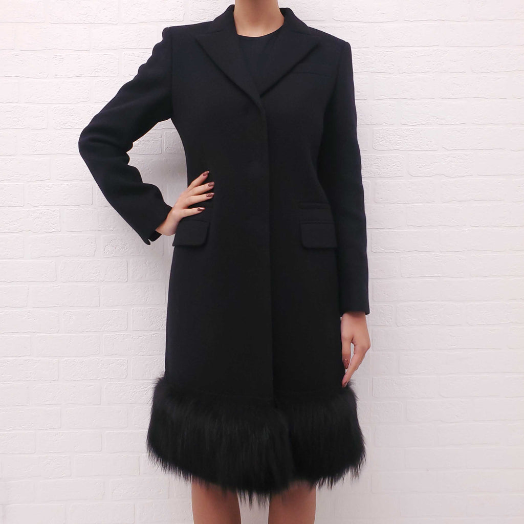 PRADA BLACK COAT WITH FUR BOTTOM - SIZE 40
