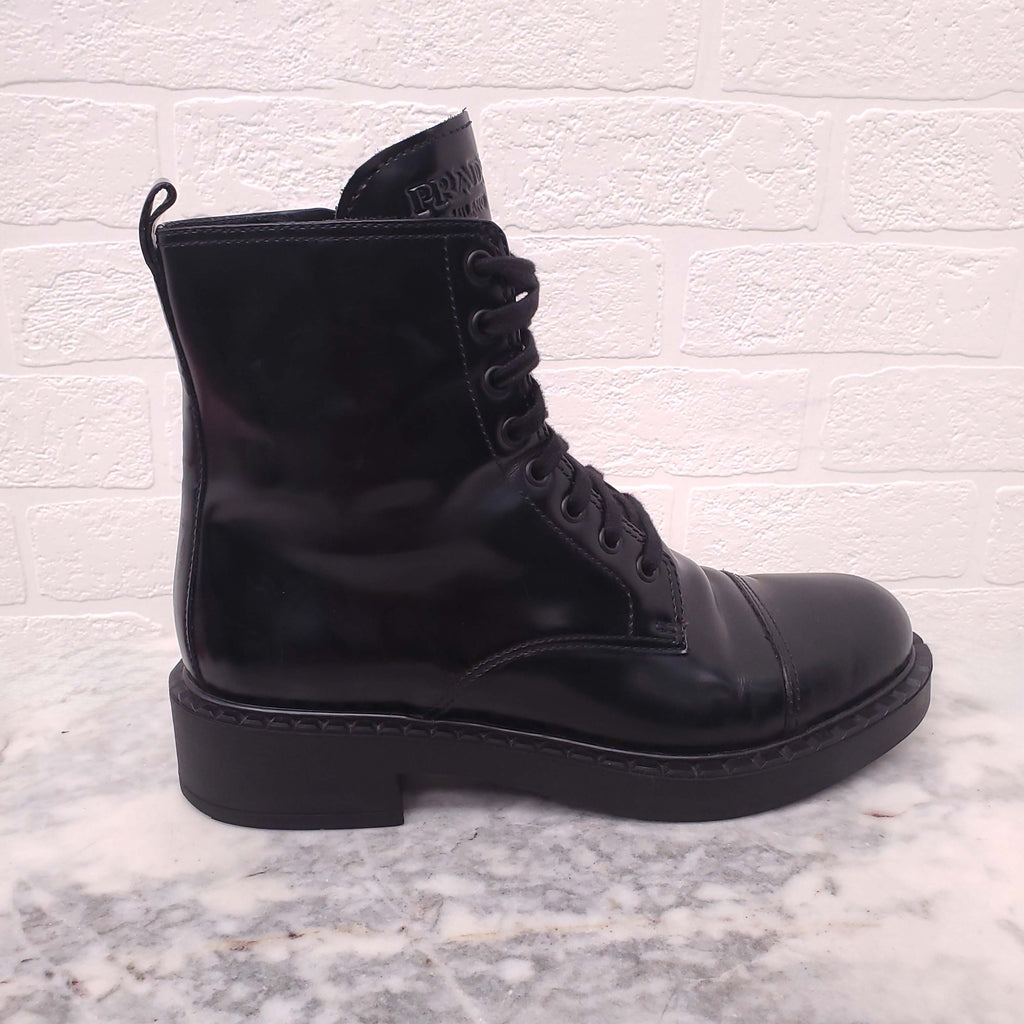 PRADA BLACK COMBAT BOOTS WITH LOGO - SIZE 40