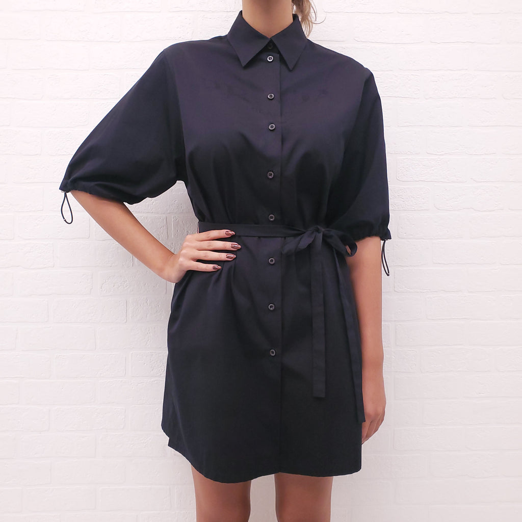 PRADA BLACK COTTON LOGO DRESS WITH BELT - SIZE 42