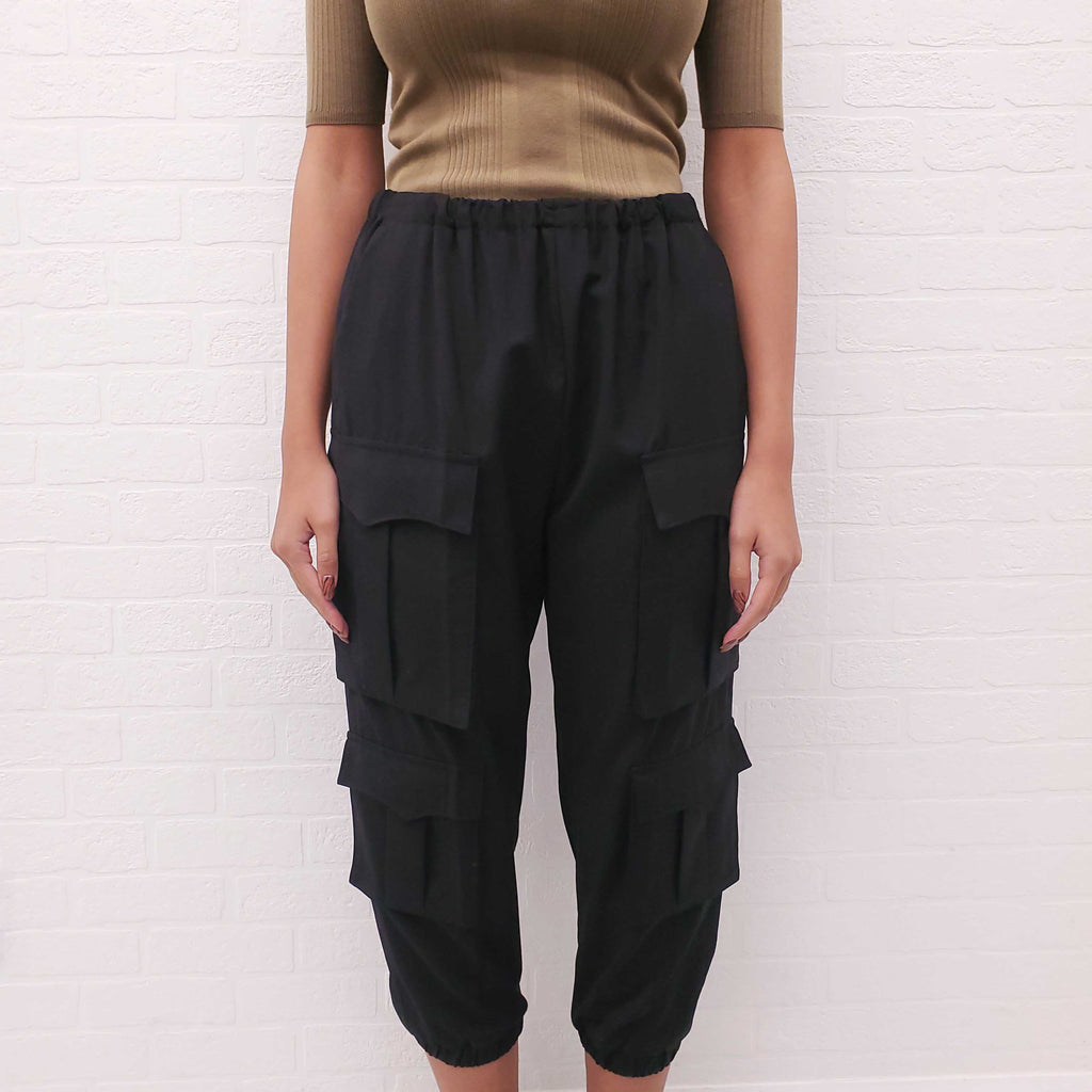 PRADA BLACK CROPPED CARGO PANTS - SIZE 42