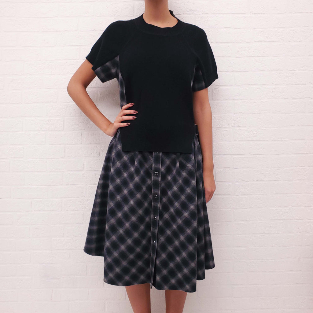 SACAI BLACK AND GREY PLAID DRESS - SIZE 2/M