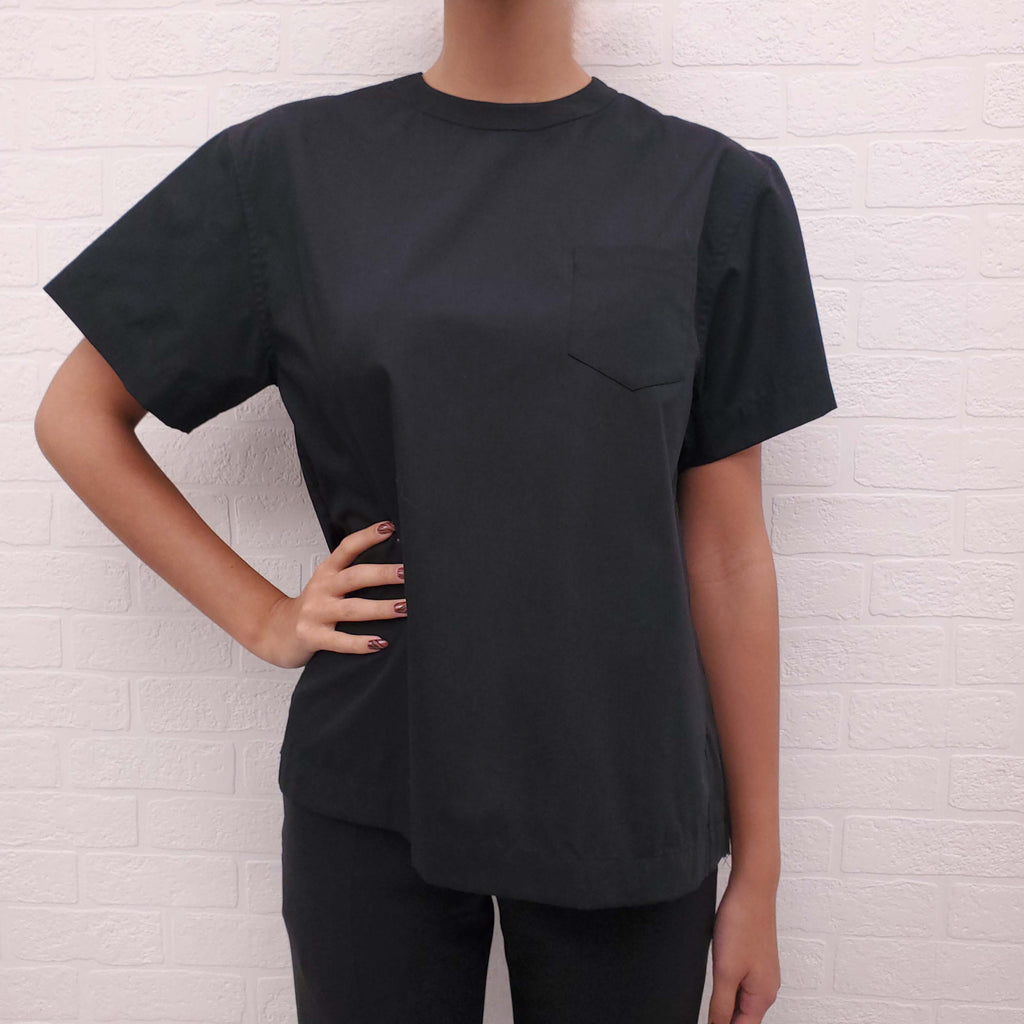 SACAI BLACK T-SHIRT WITH PLEATED BACK - SIZE 2/M