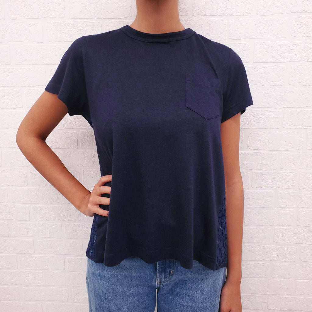 SACAI NAVY T-SHIRT WITH LACE - SIZE 1/S