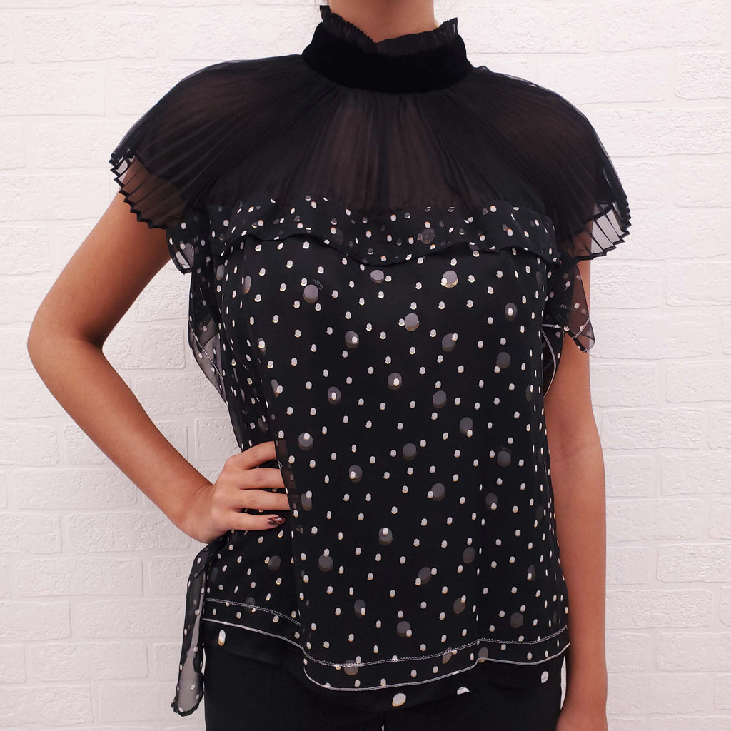 SACAI PLEATED POLKA DOT BLOUSE - SIZE 2/M