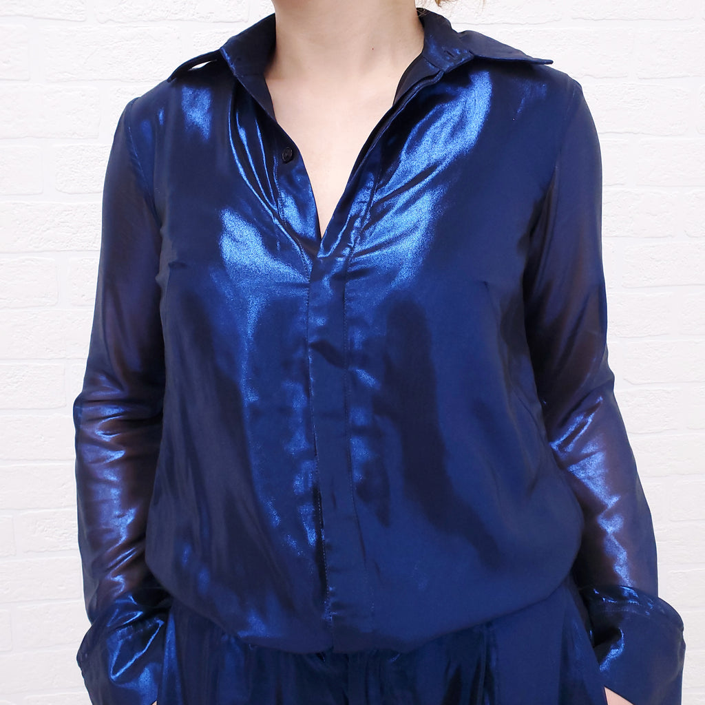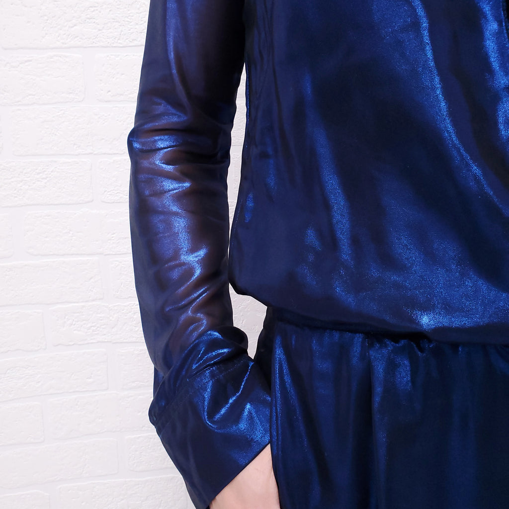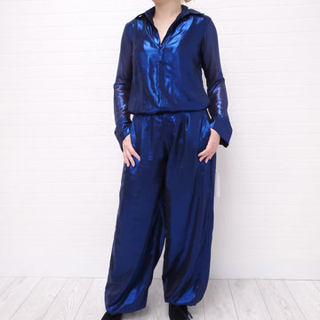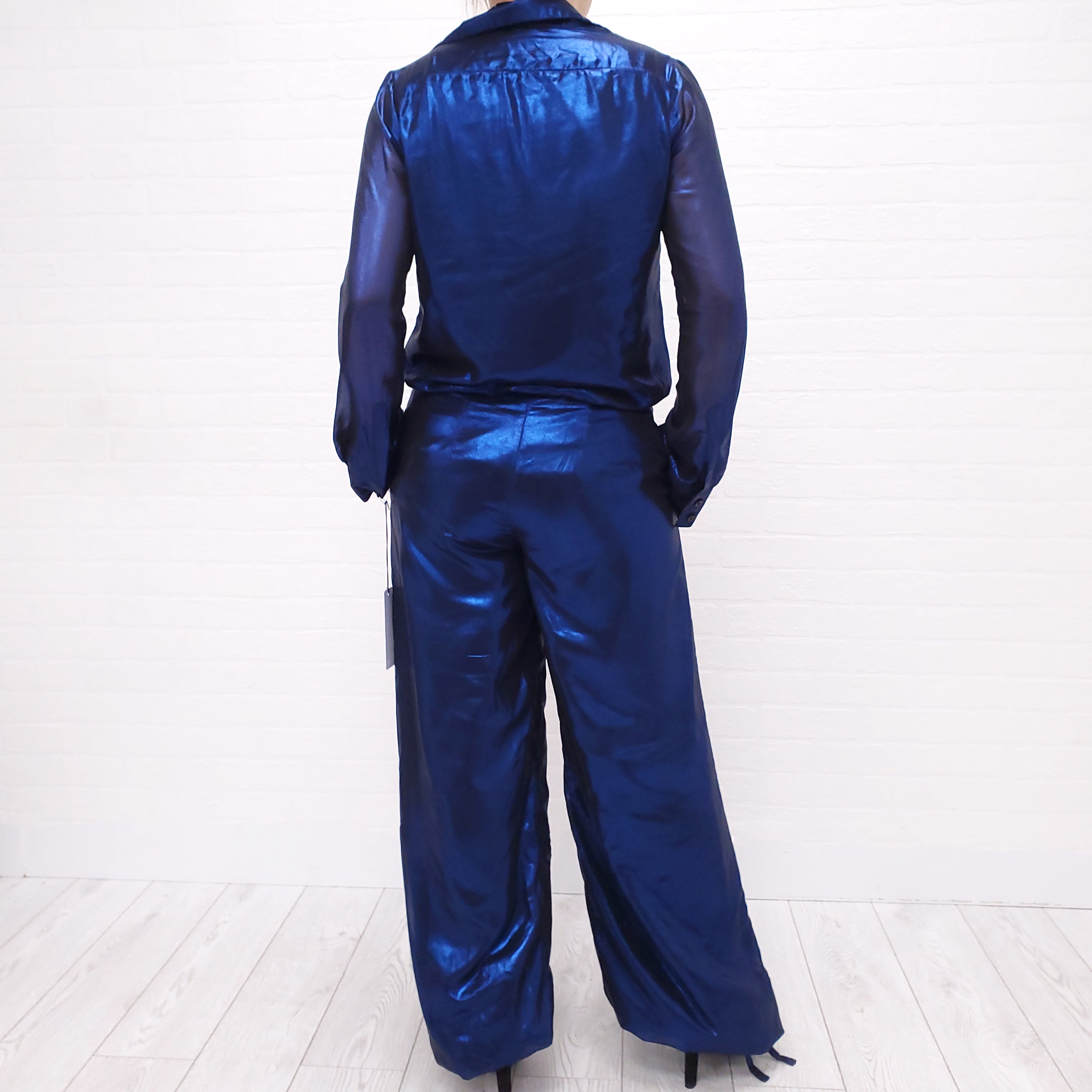 GRETA CONSTANTINE BLUE METALLIC JUMPSUIT - SIZE S
