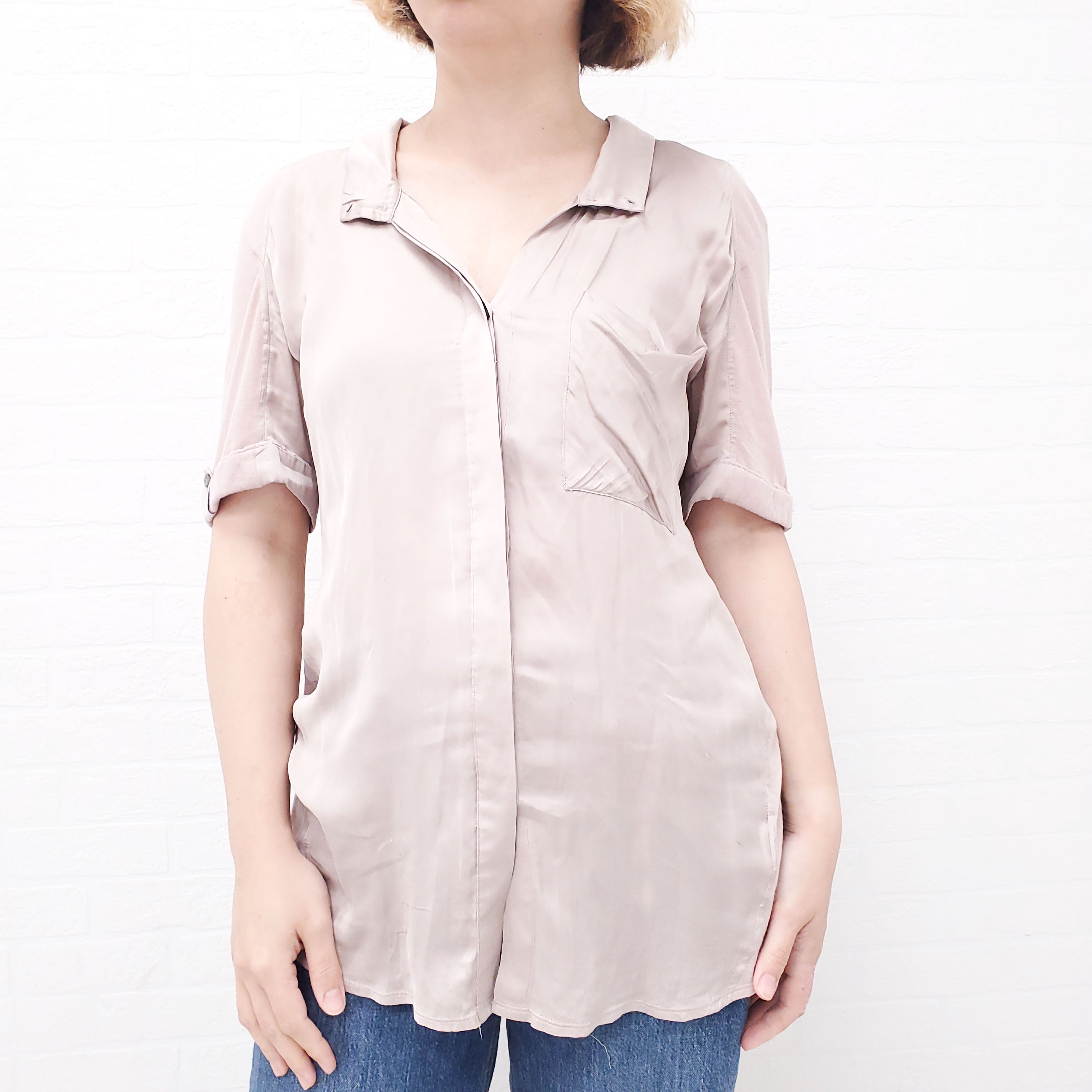 HELMUT LANG PINK SILK BLOUSE - SIZE M
