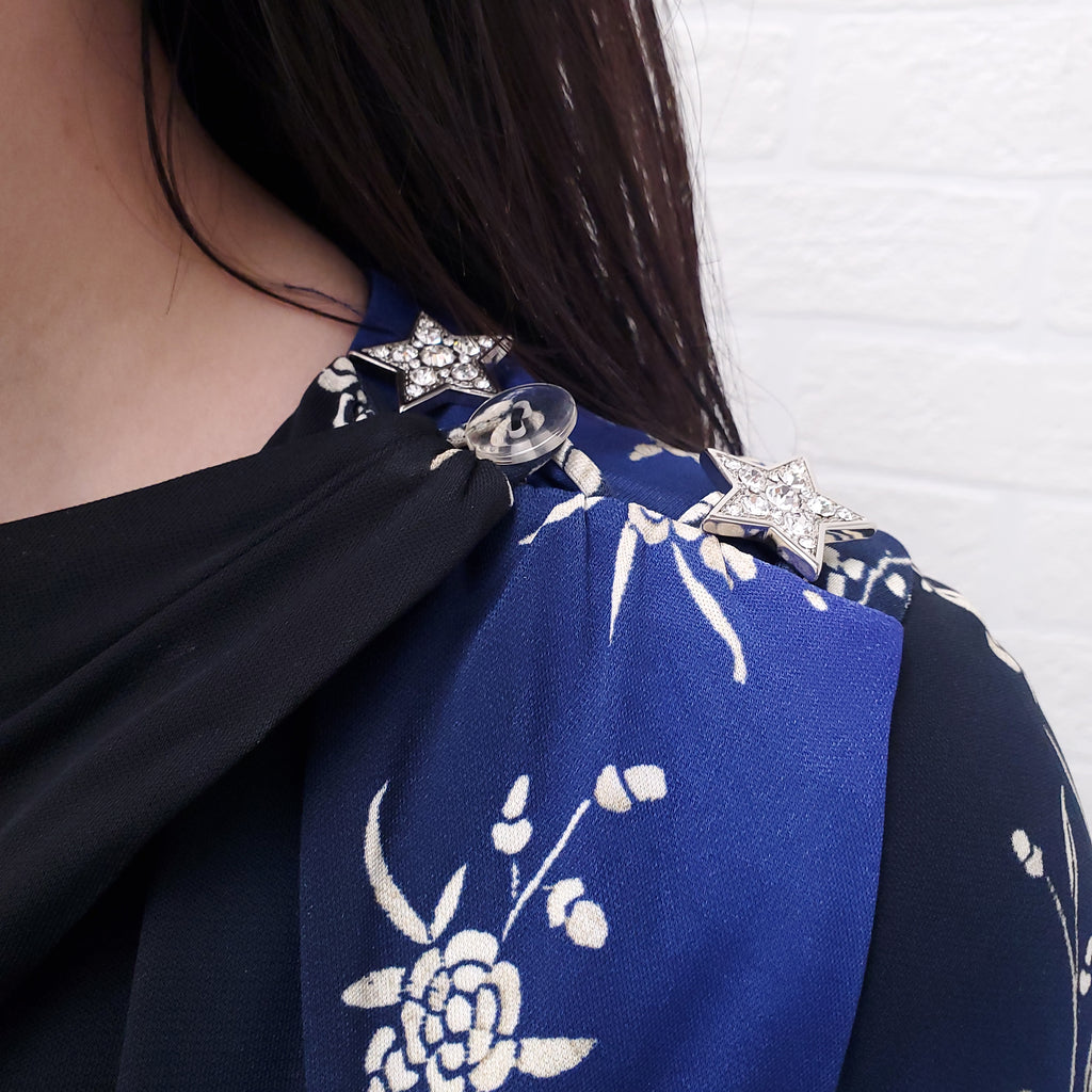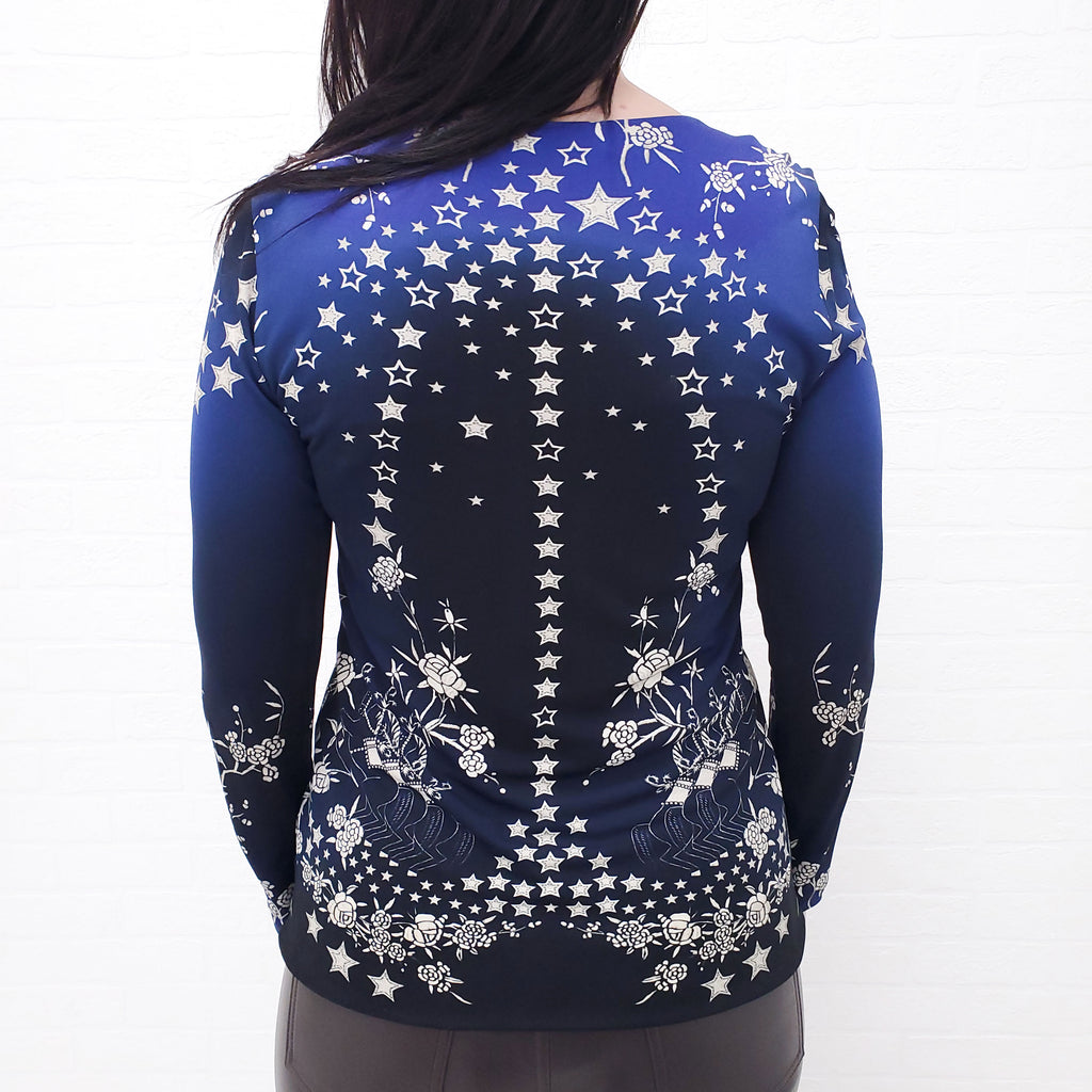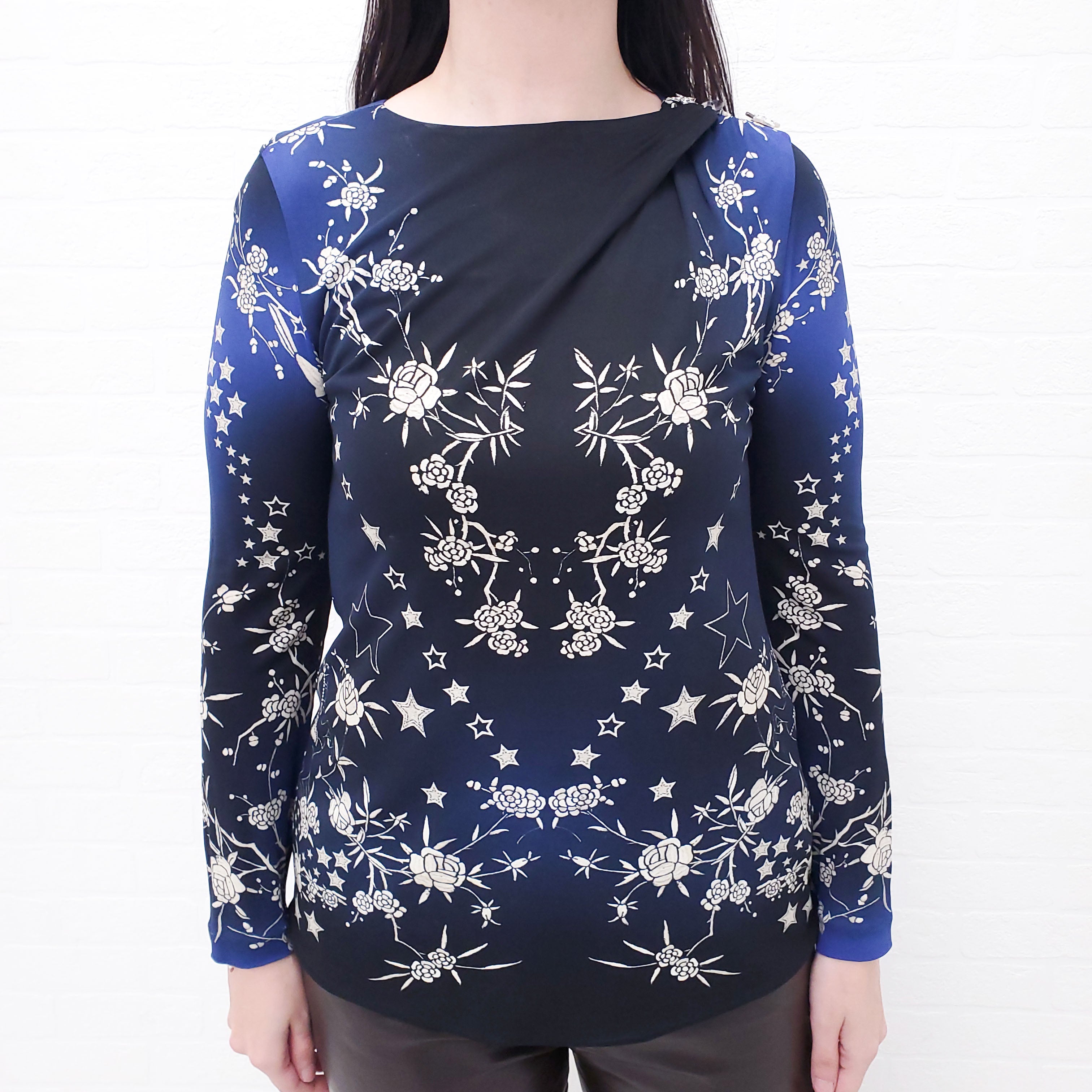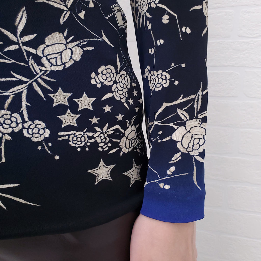 ROBERTO CAVALLI STAR FLORAL LONG SLEEVE TOP WITH CRYSTAL DETAIL -SIZE 40