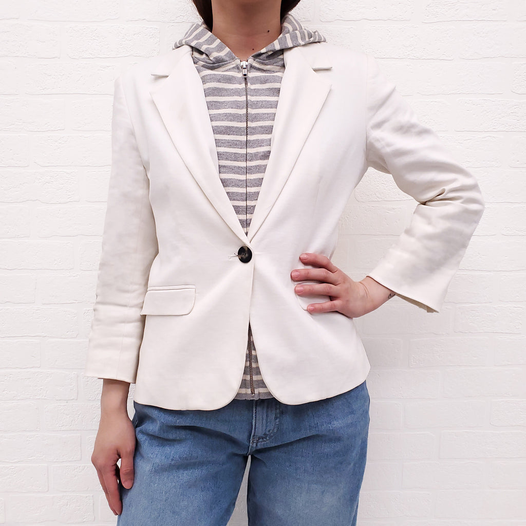 VERONICA BEARD CREAM BLAZER WITH GREY STRIPED DICKIE - SIZE 1/S