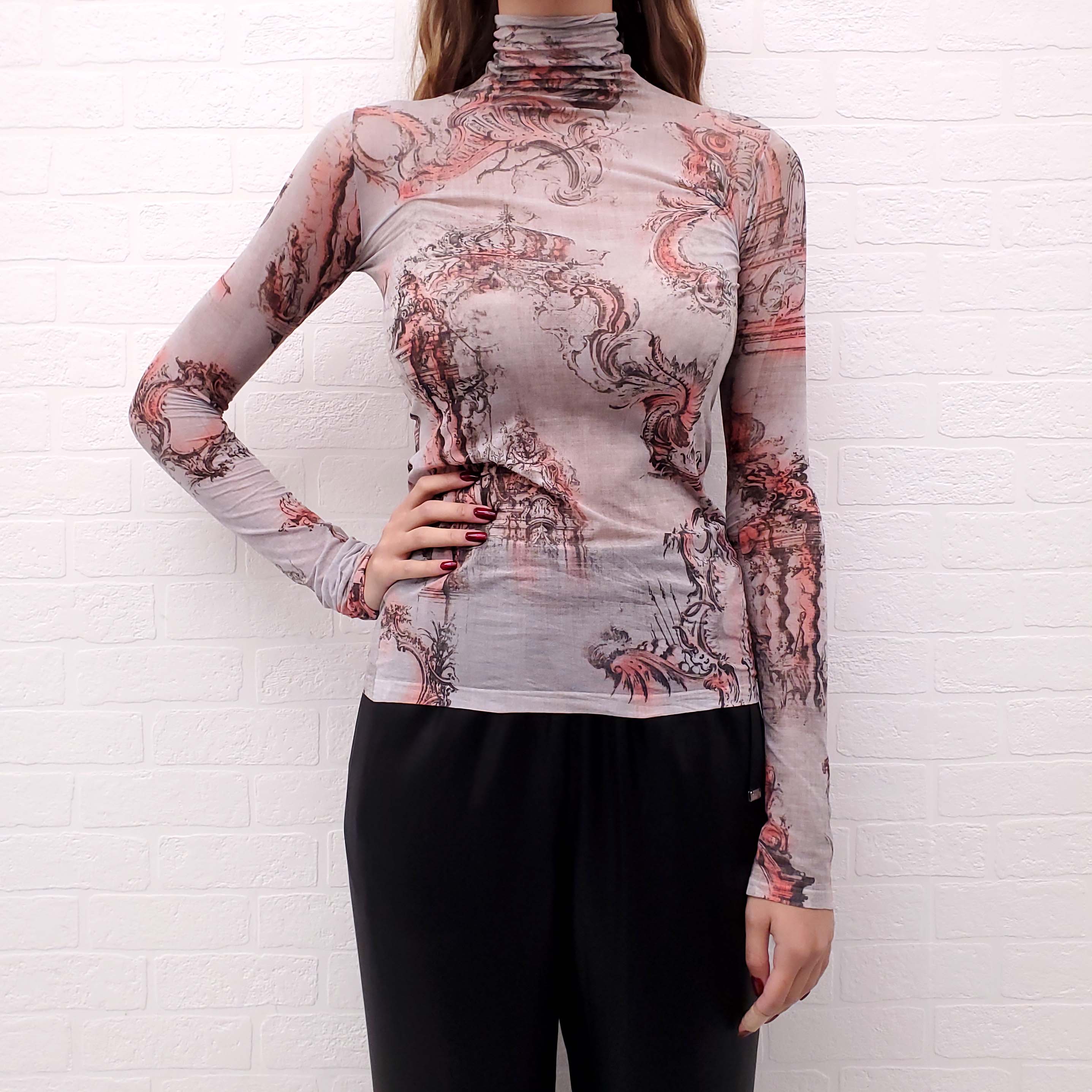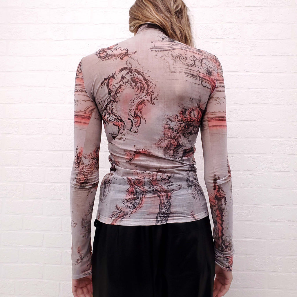 ACNE STUDIOS GREY AND RED PRINTED THIN TURTLENECK LONG SLEEVE SHIRT - SIZE XS