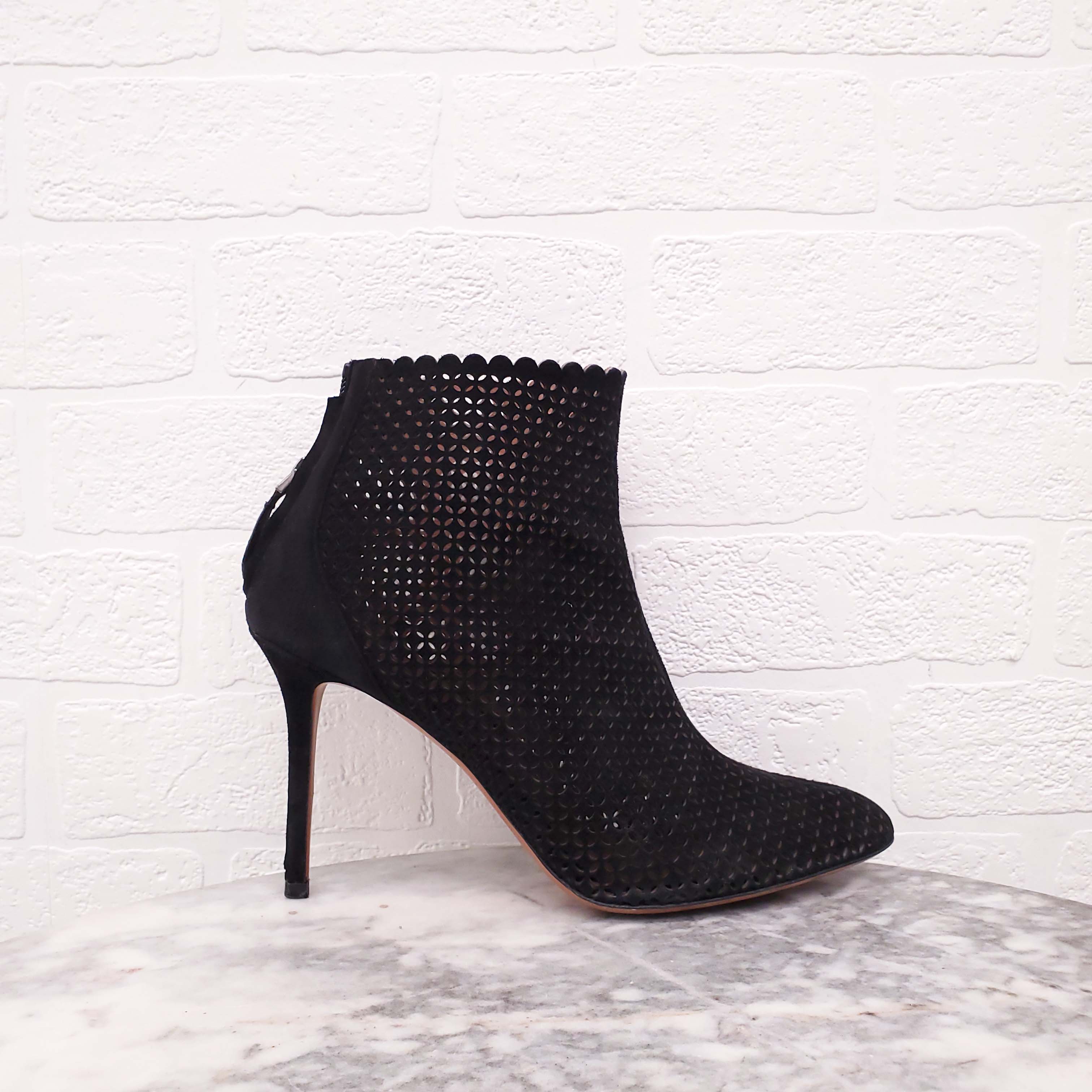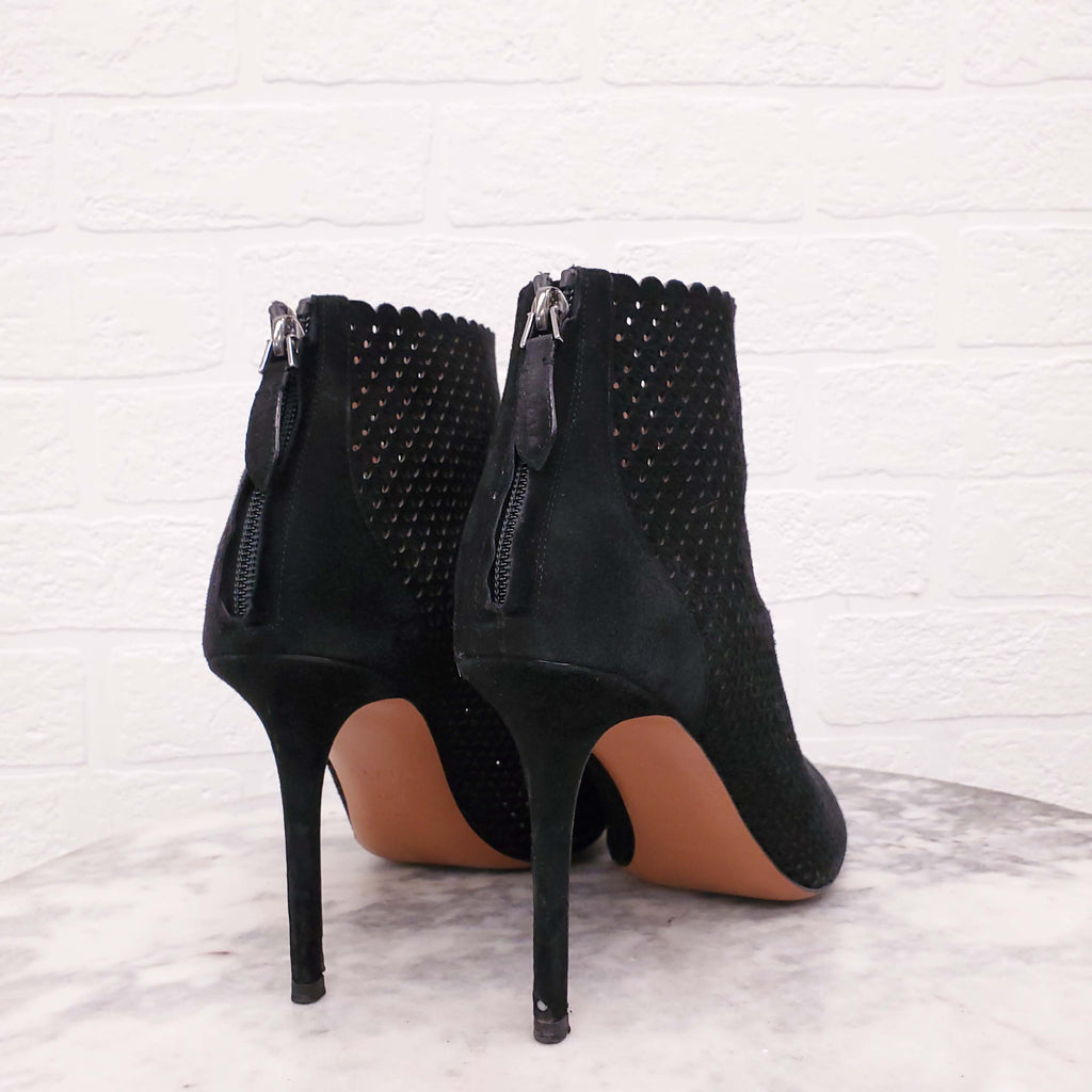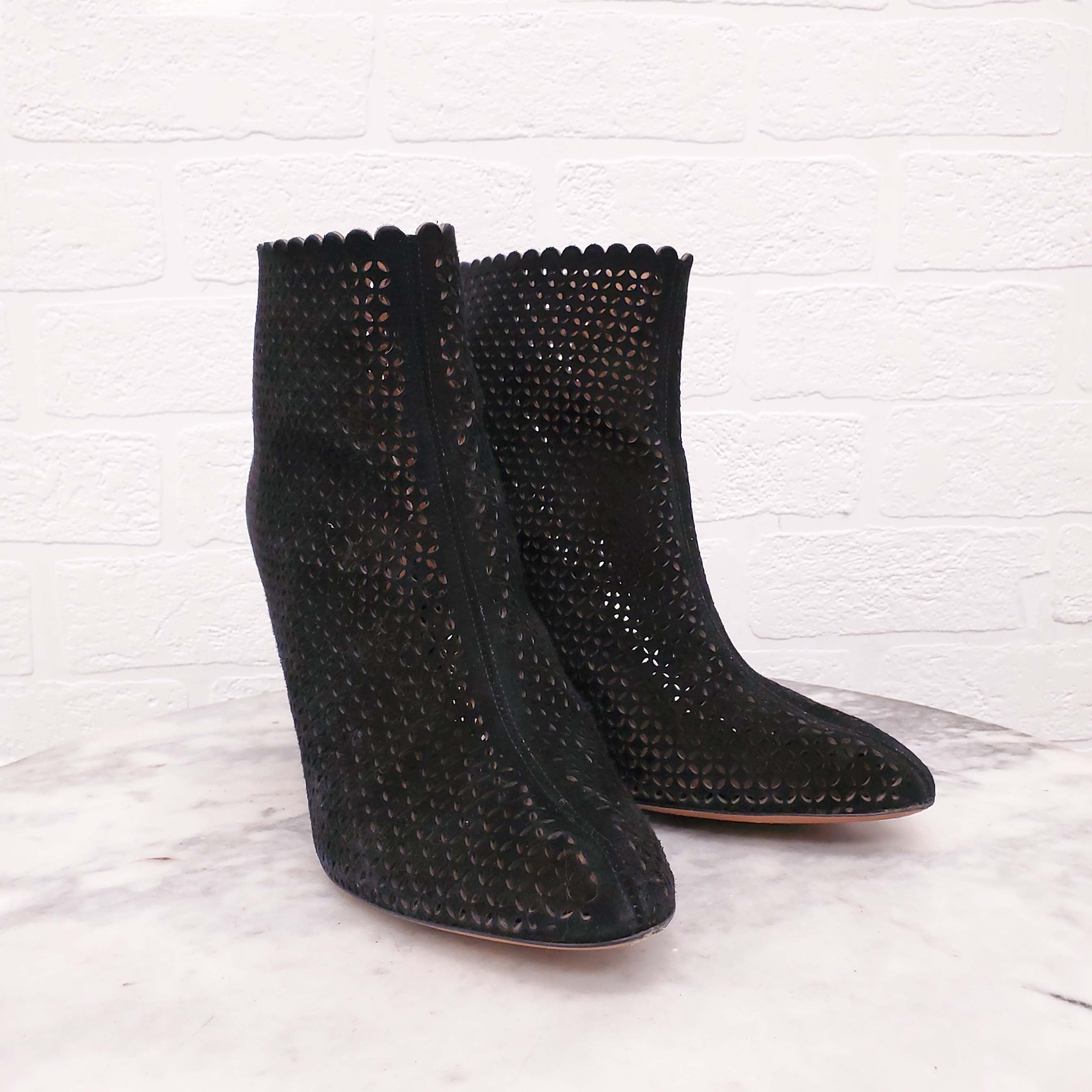 ALAÏA BLACK SUEDE LASER CUT BOOTIES - SIZE 40.5