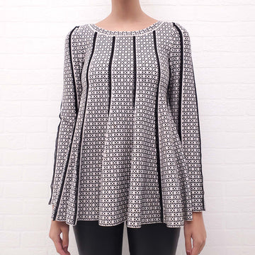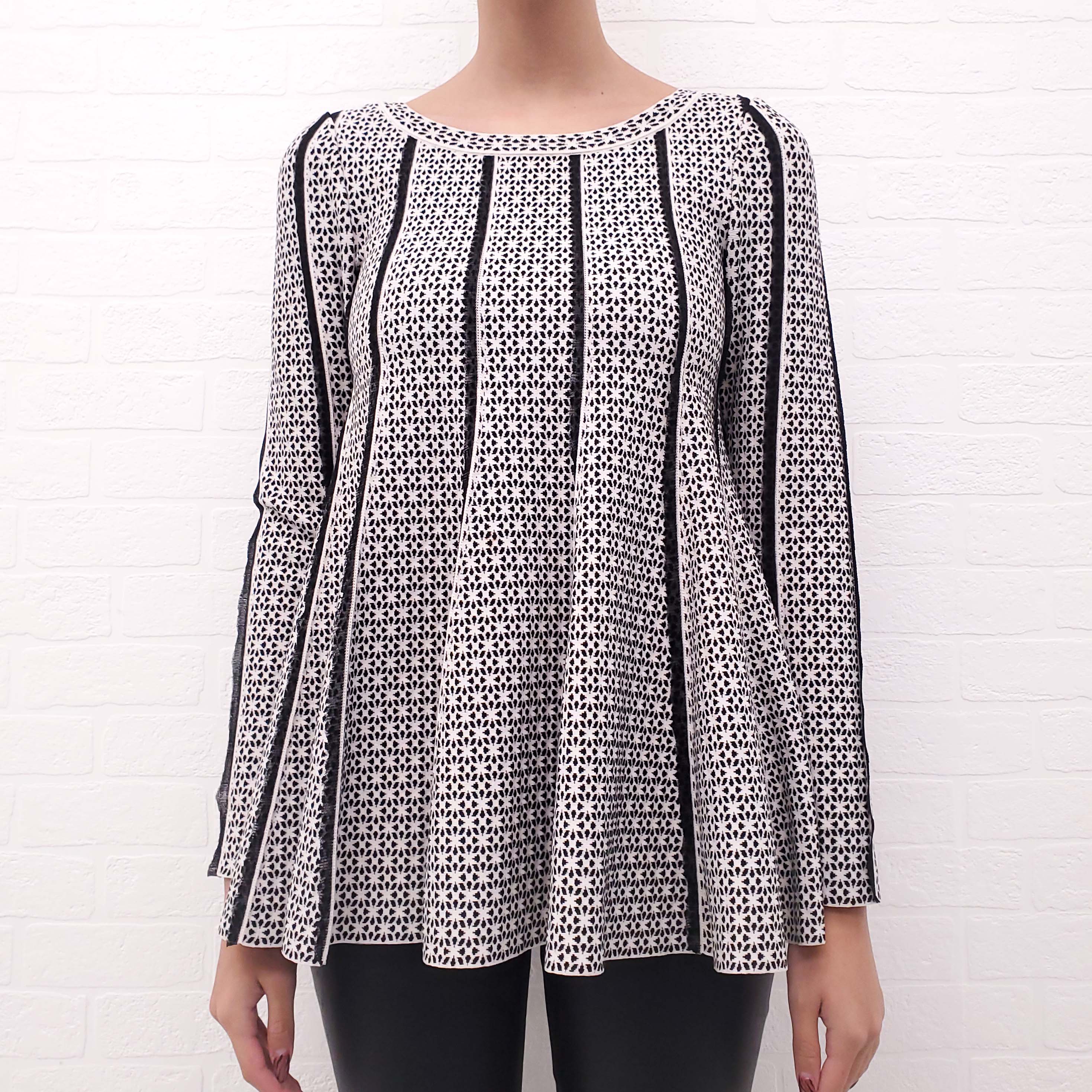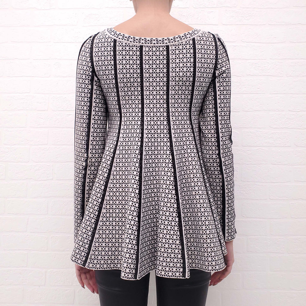 ALAÏA CREAM AND BLACK PATTERNED PEPLUM TOP - SIZE 36