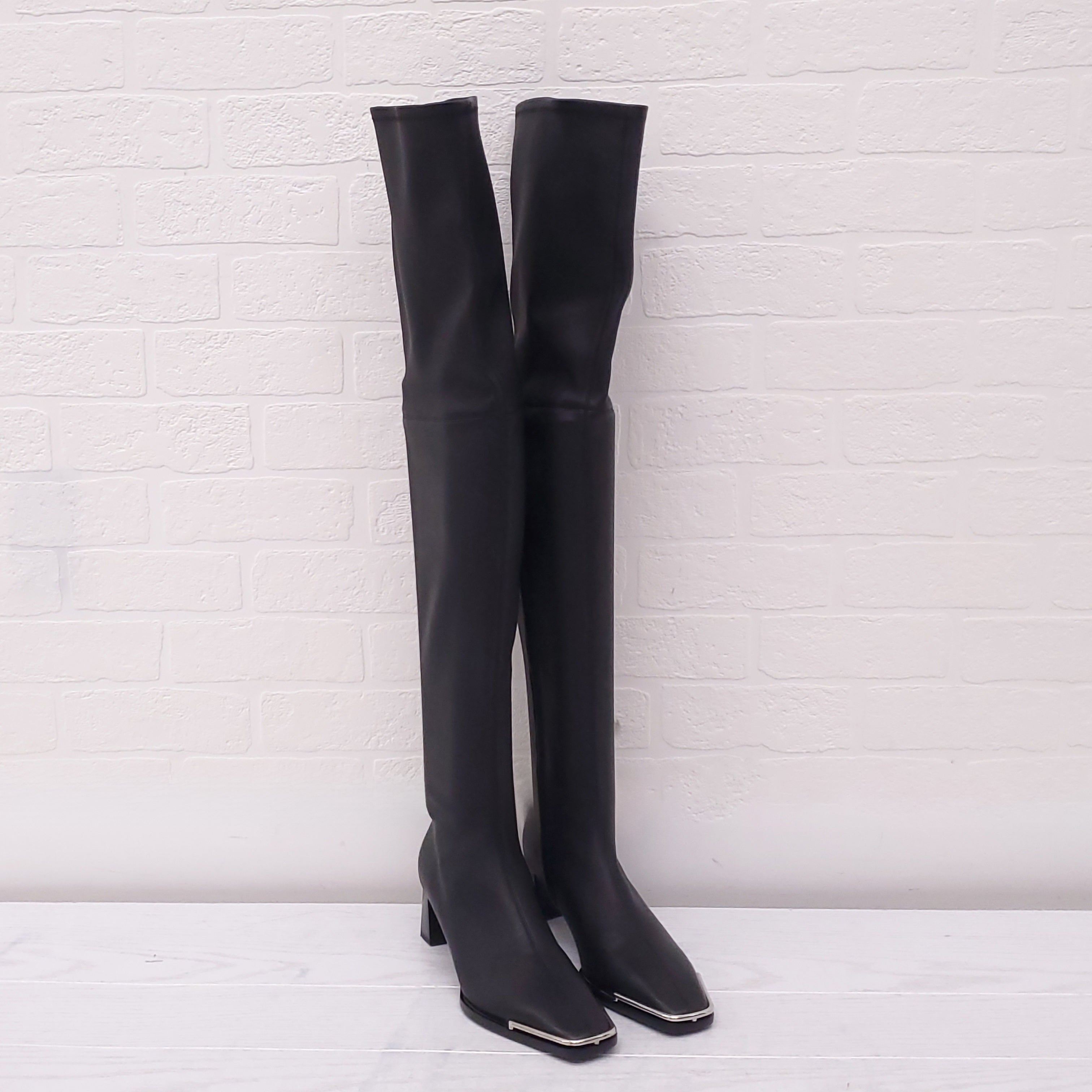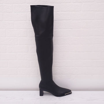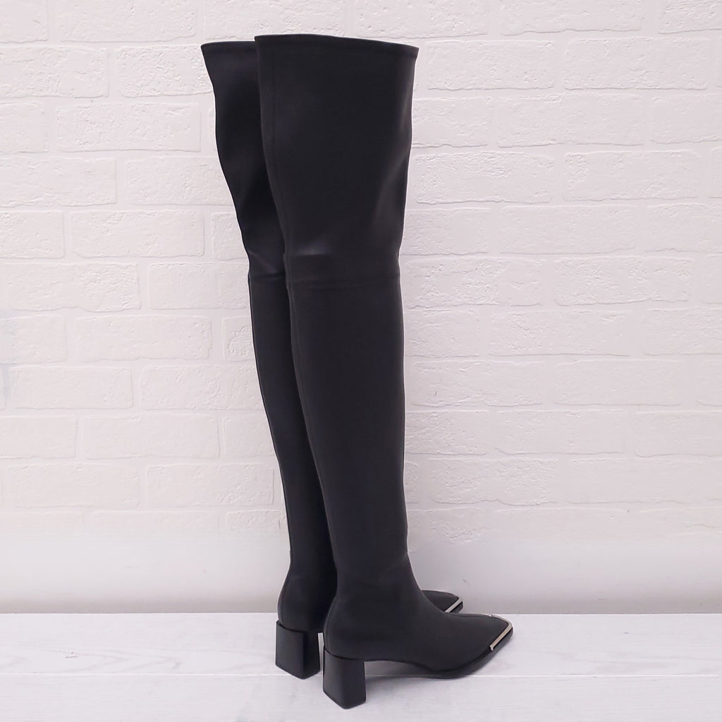 ALEXANDER WANG BLACK LEATHER 'MASCHA' THIGH HIGH BOOTS - SIZE 36.5