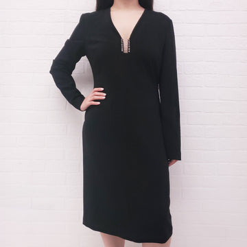 ALEXANDER WANG BLACK LONG SLEEVE DRESS WITH SILVER PIERCINGS - SIZE 10