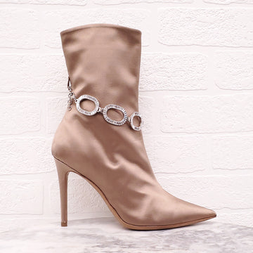 ALEXANDRE VAUTHIER BEIGE SATIN HEELED BOOTIE WITH CHAIN - SIZE 37