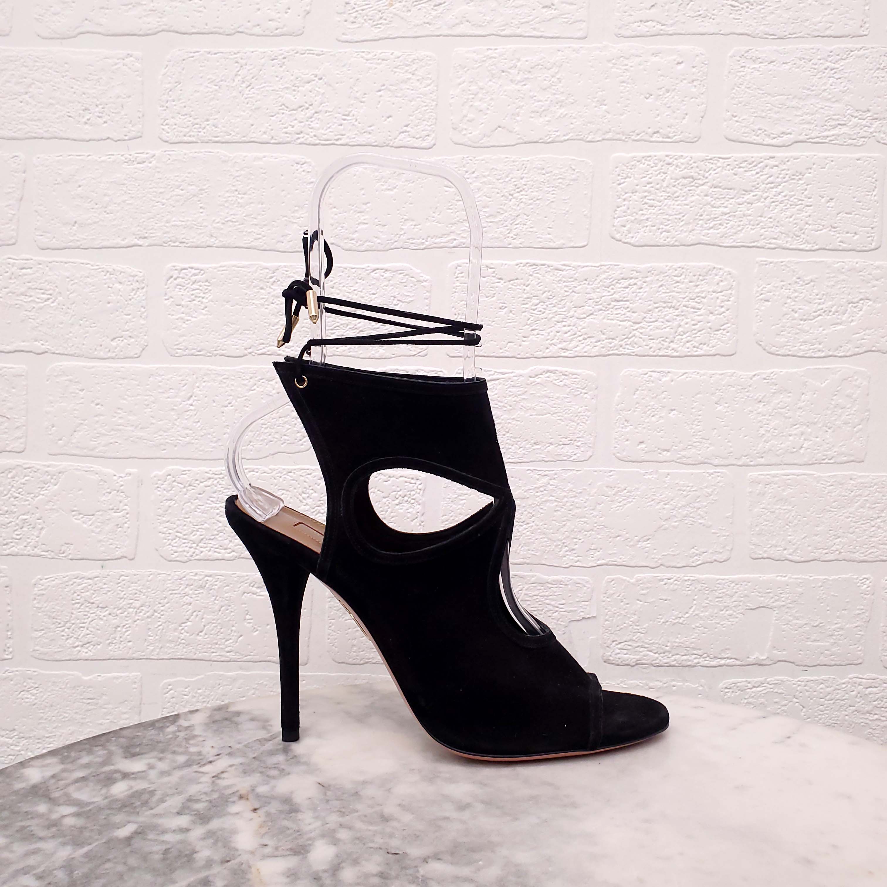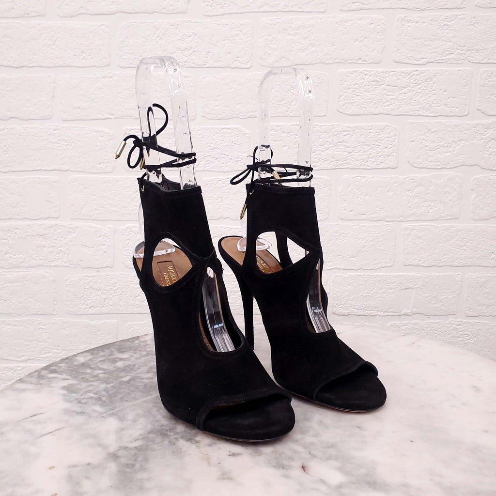 AQUAZZURA BLACK LACEUP IN THE BACK SUEDE HEELS - SIZE 38.5