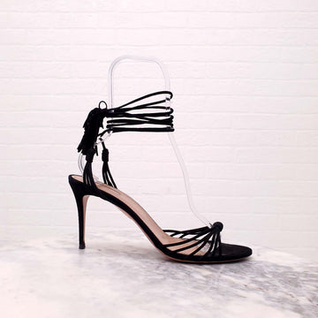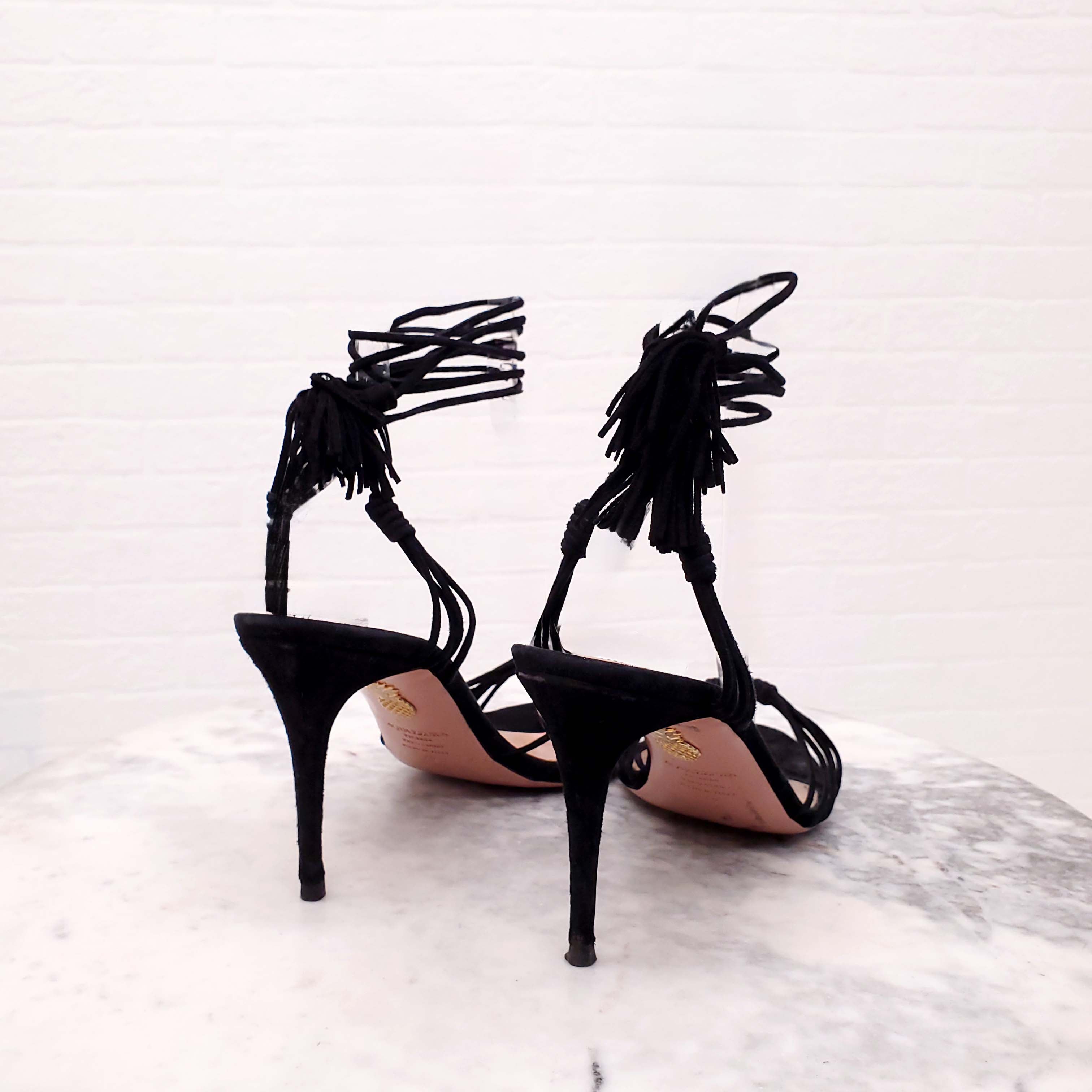 AQUAZZURA BLACK SUEDE HEELS WITH TASSEL - SIZE 42