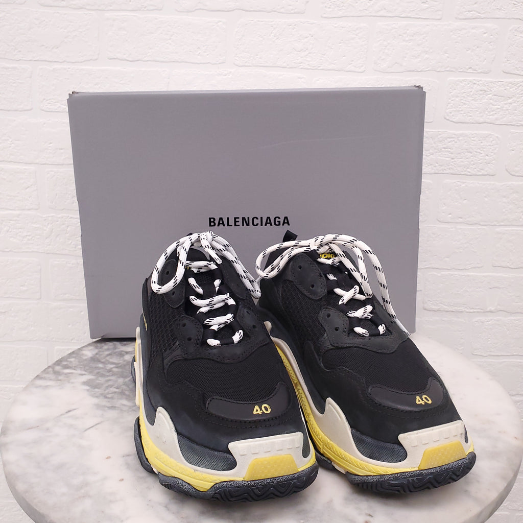 BALENCIAGA BLACK AND YELLOW TRIPLE S SNEAKERS - SIZE 40