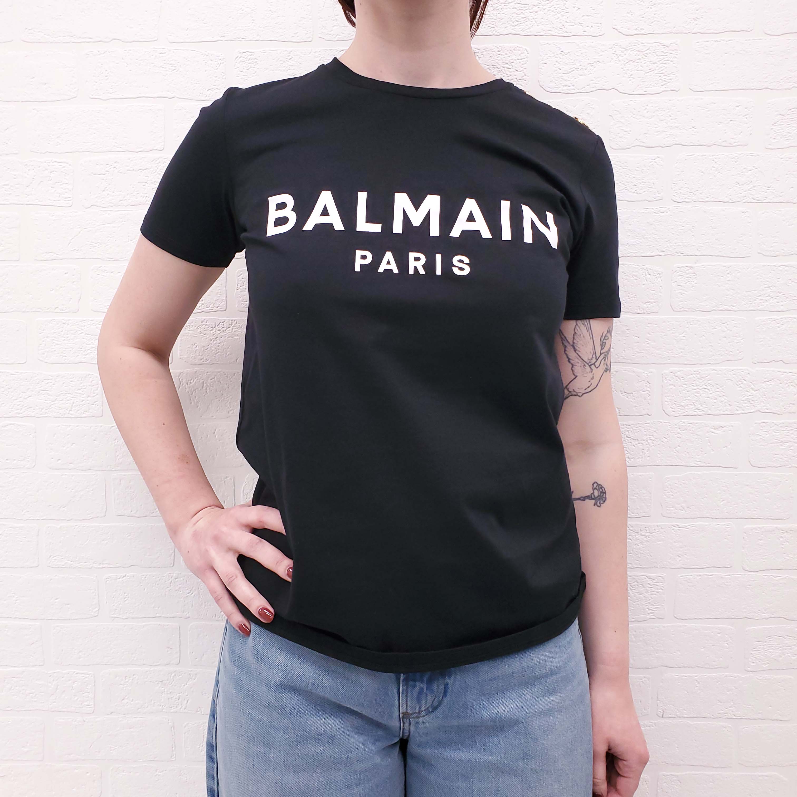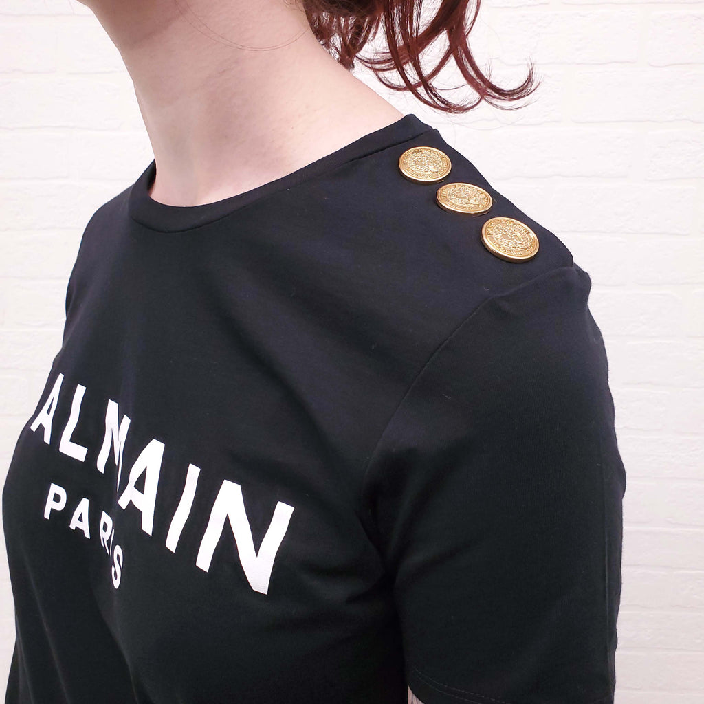 BALMAIN BLACK LOGO T-SHIRT WITH WHITE LOGO - SIZE XS