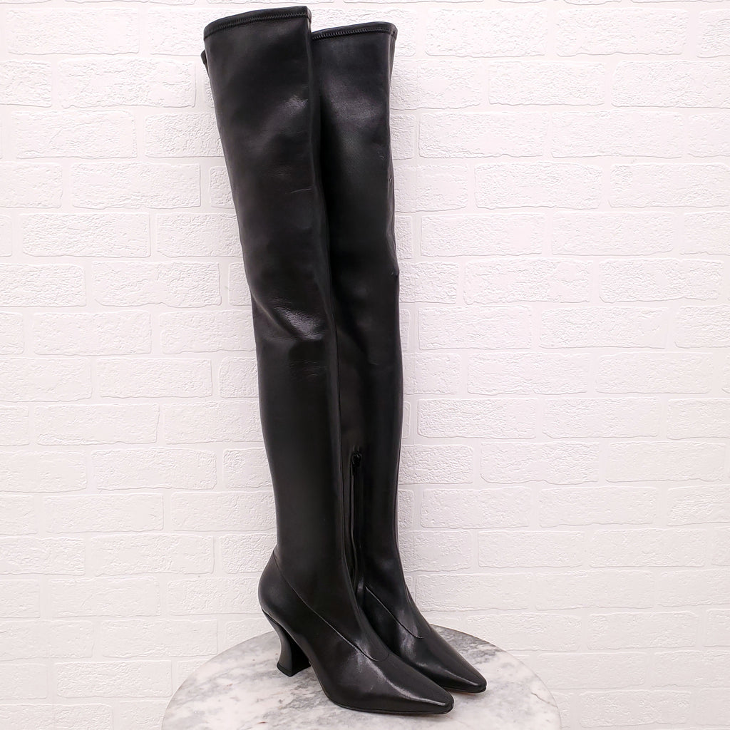 BOTTEGA VENETA BLACK THIGH HIGH POINTED HEELS - SIZE 41