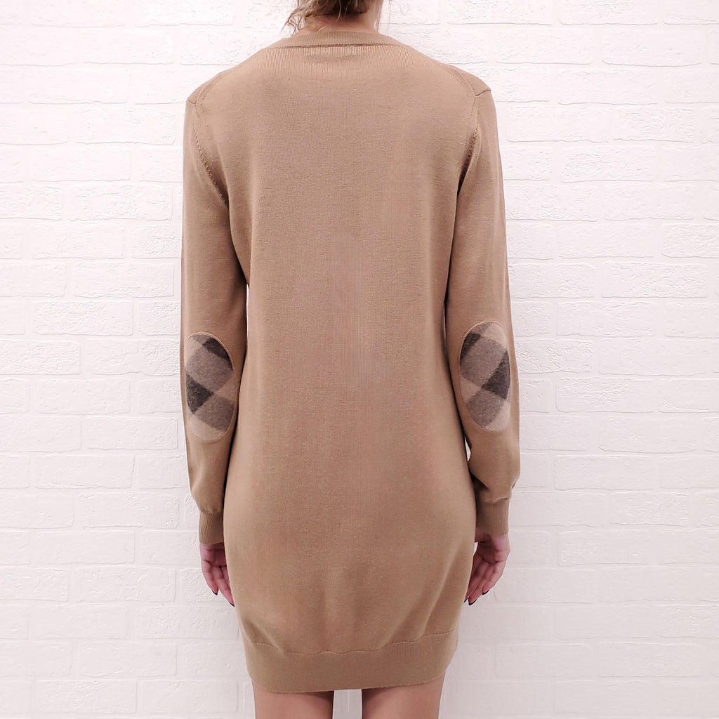 BURBERRY CAMEL SWEATER DRESS WITH CHECK ELBOW PATCHES - SIZE M