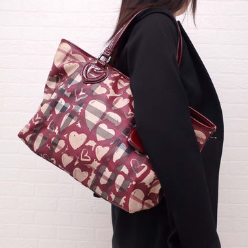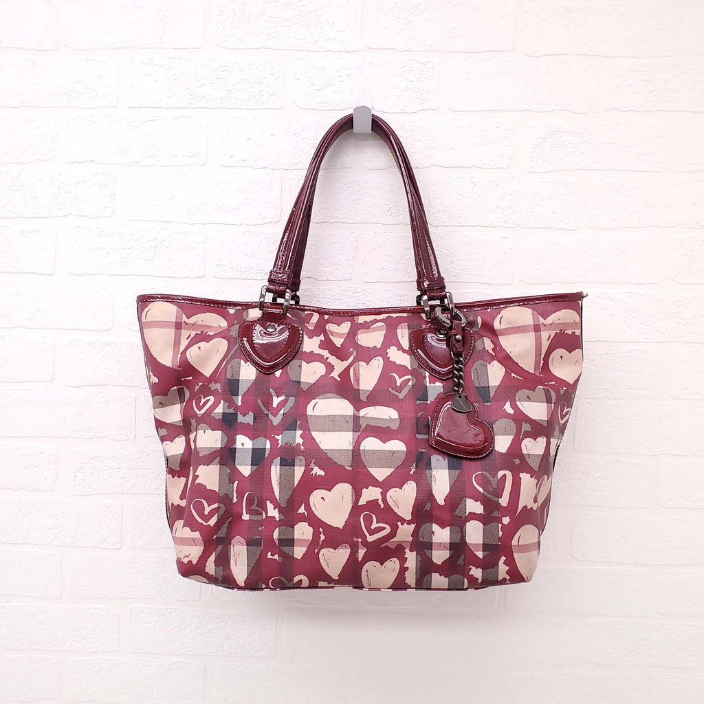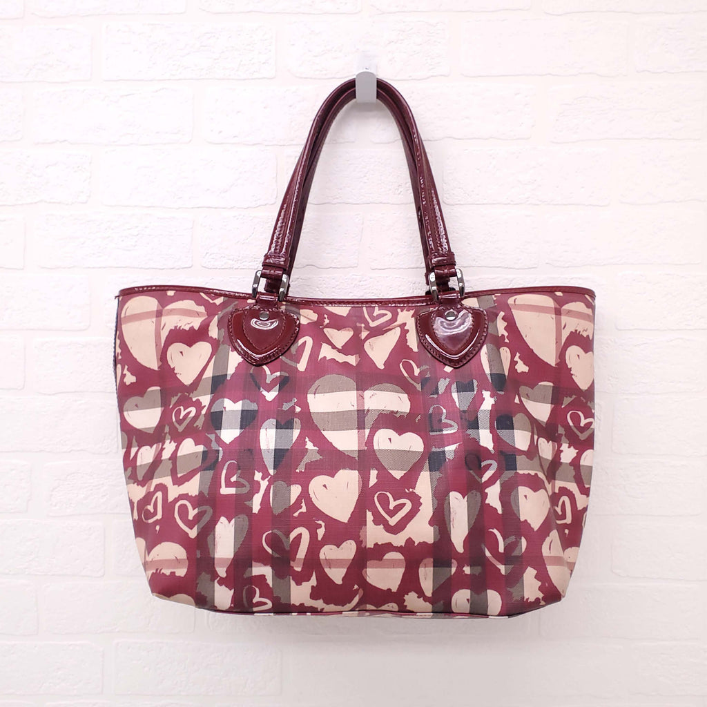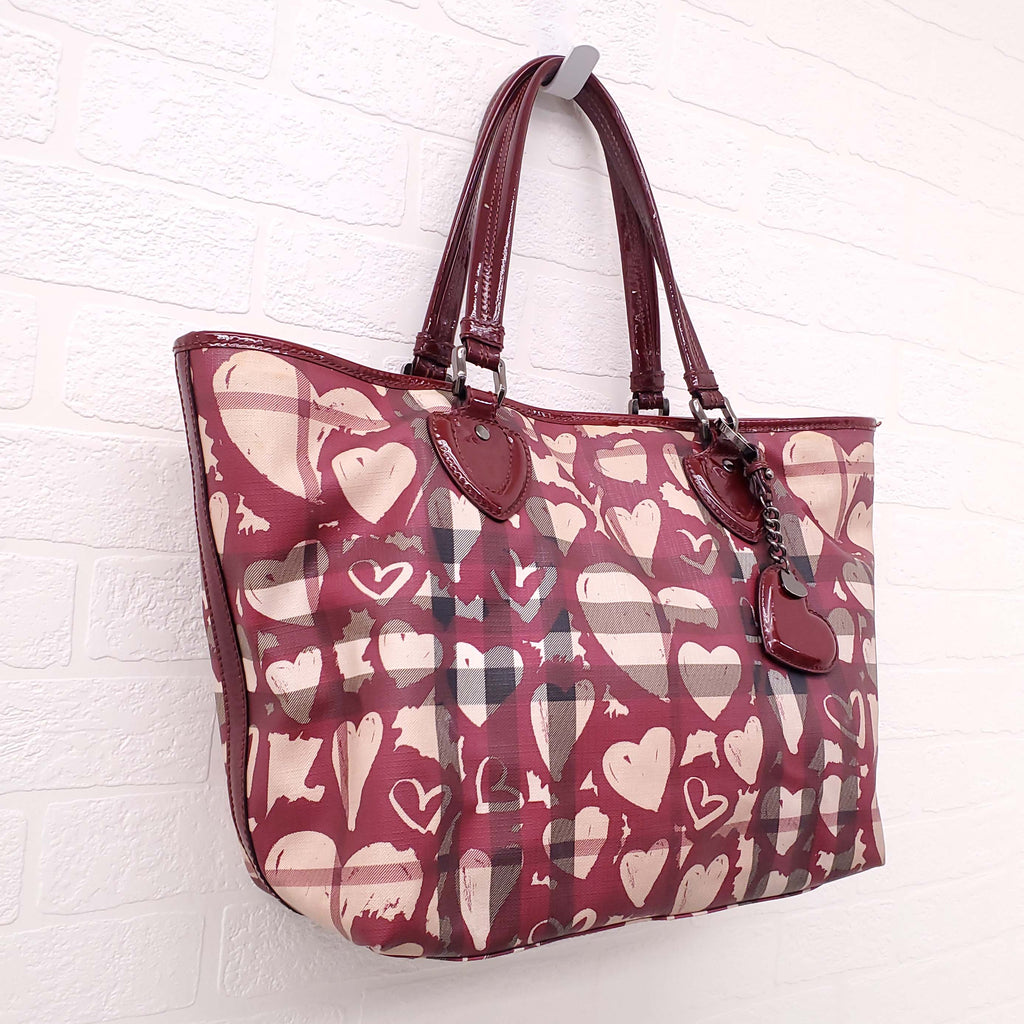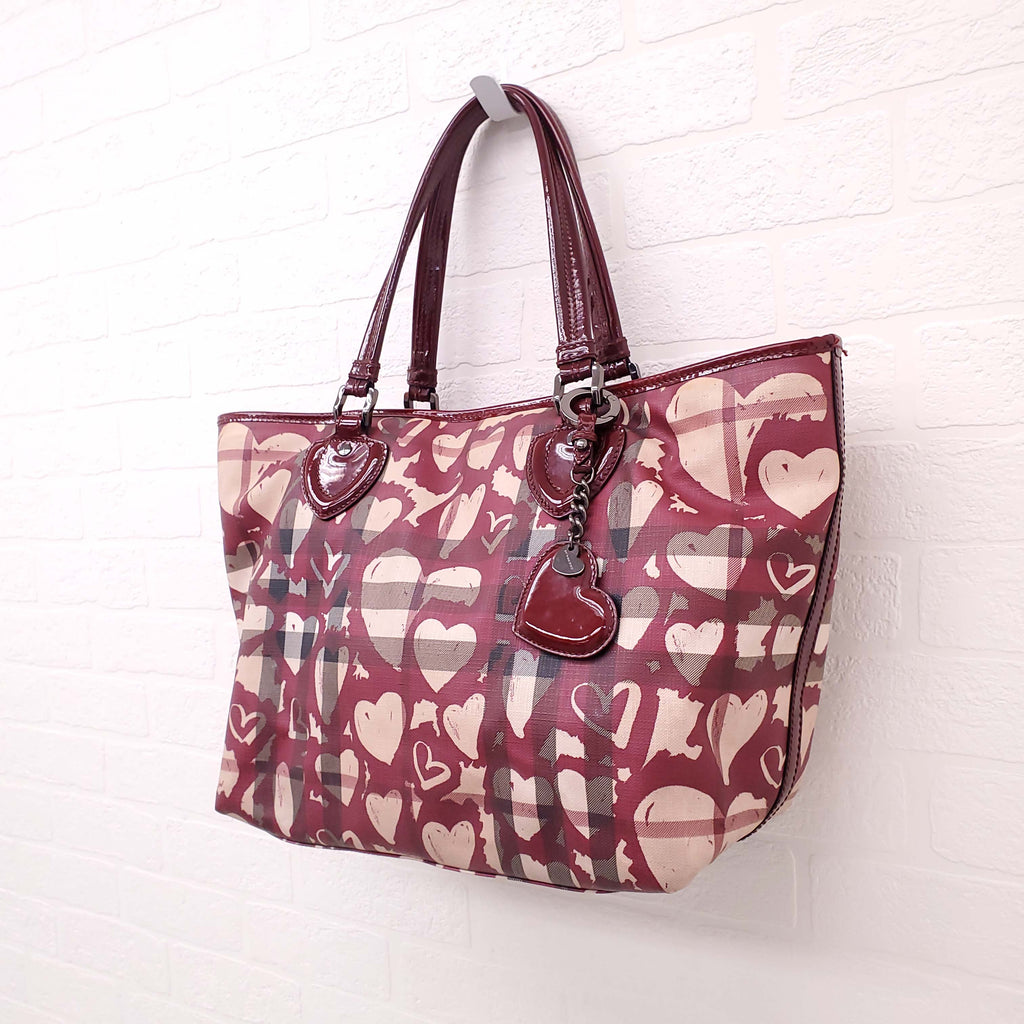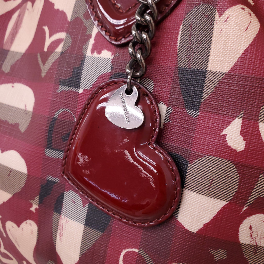 BURBERRY CHECK GRAFFITI HEART TOTE