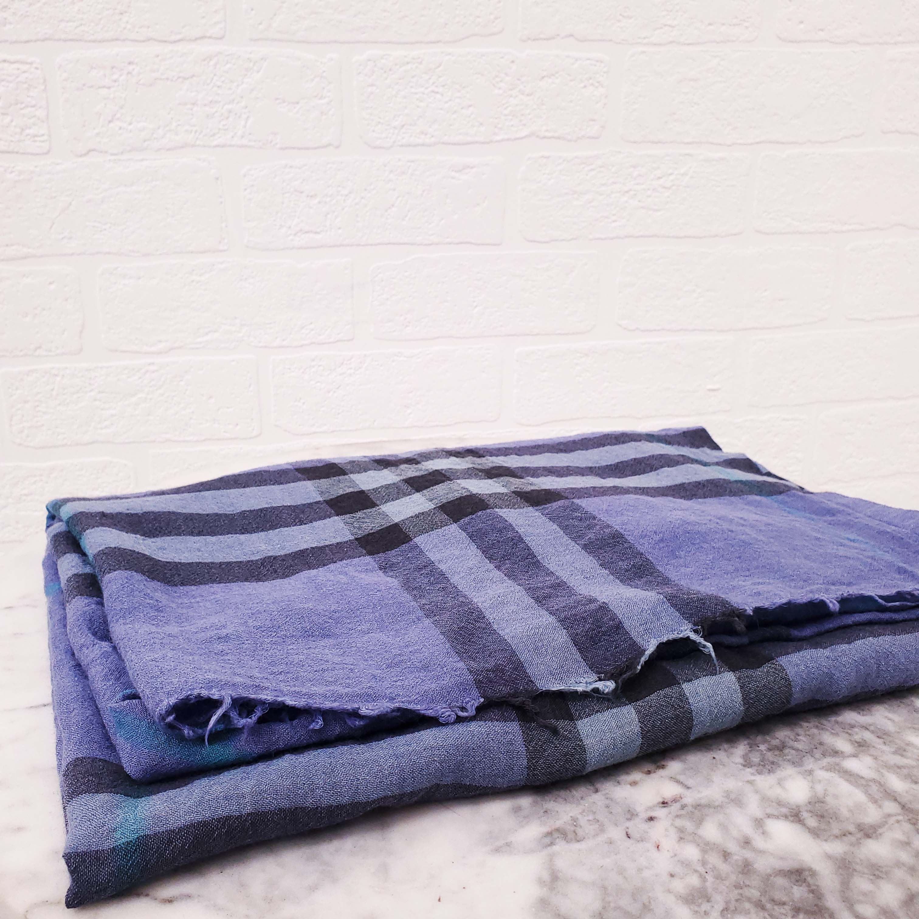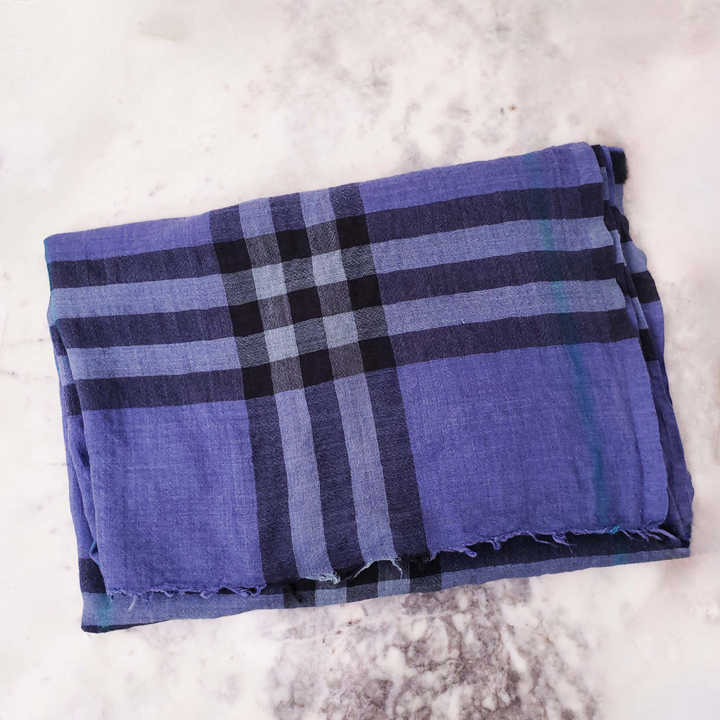 BURBERRY PERIWINKLE AND TURQUOISE CHECK SCARAF