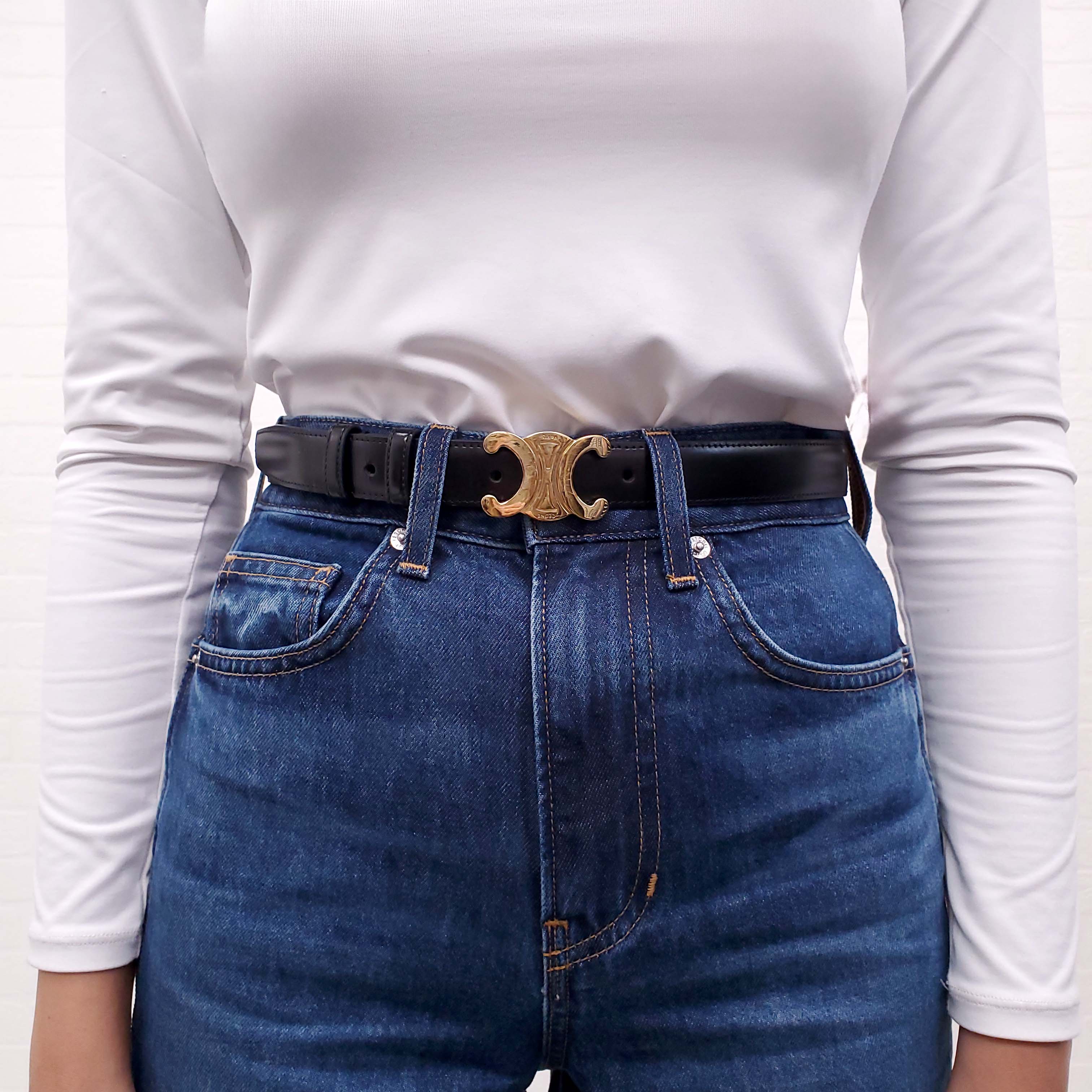 CELINE BLACK TRIOMPHE BELT - SIZE 75