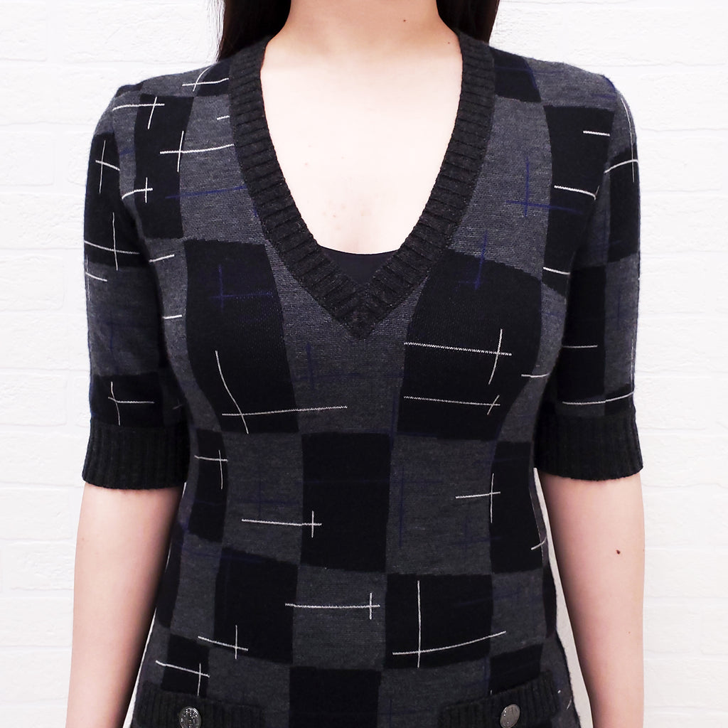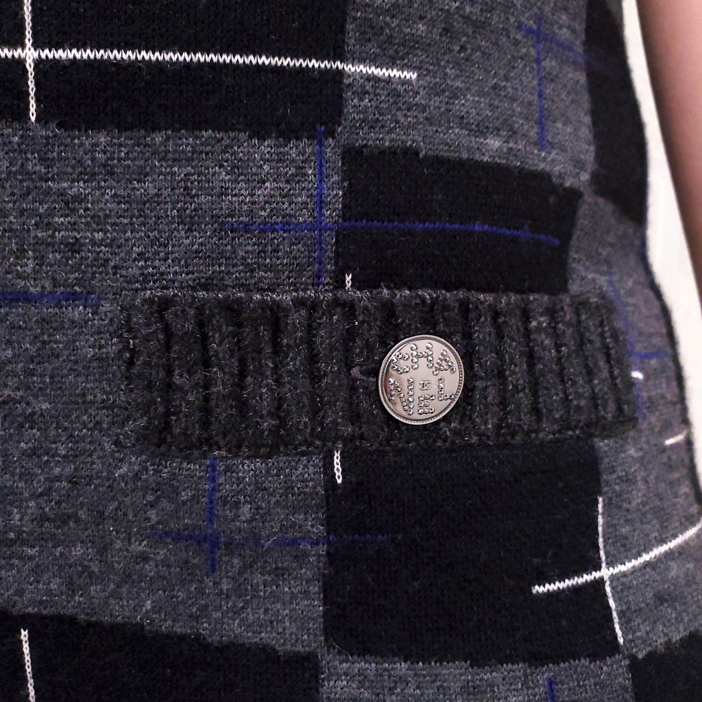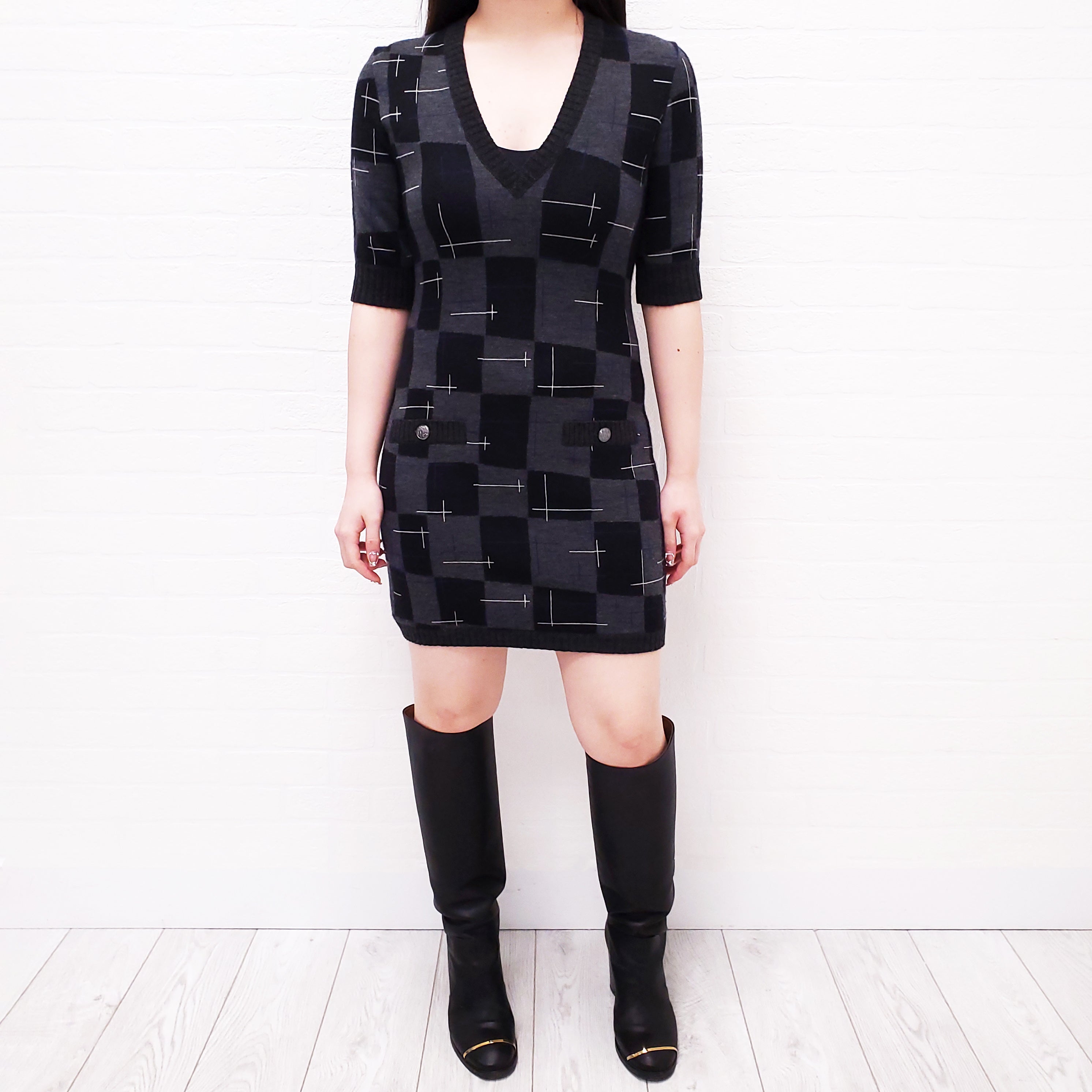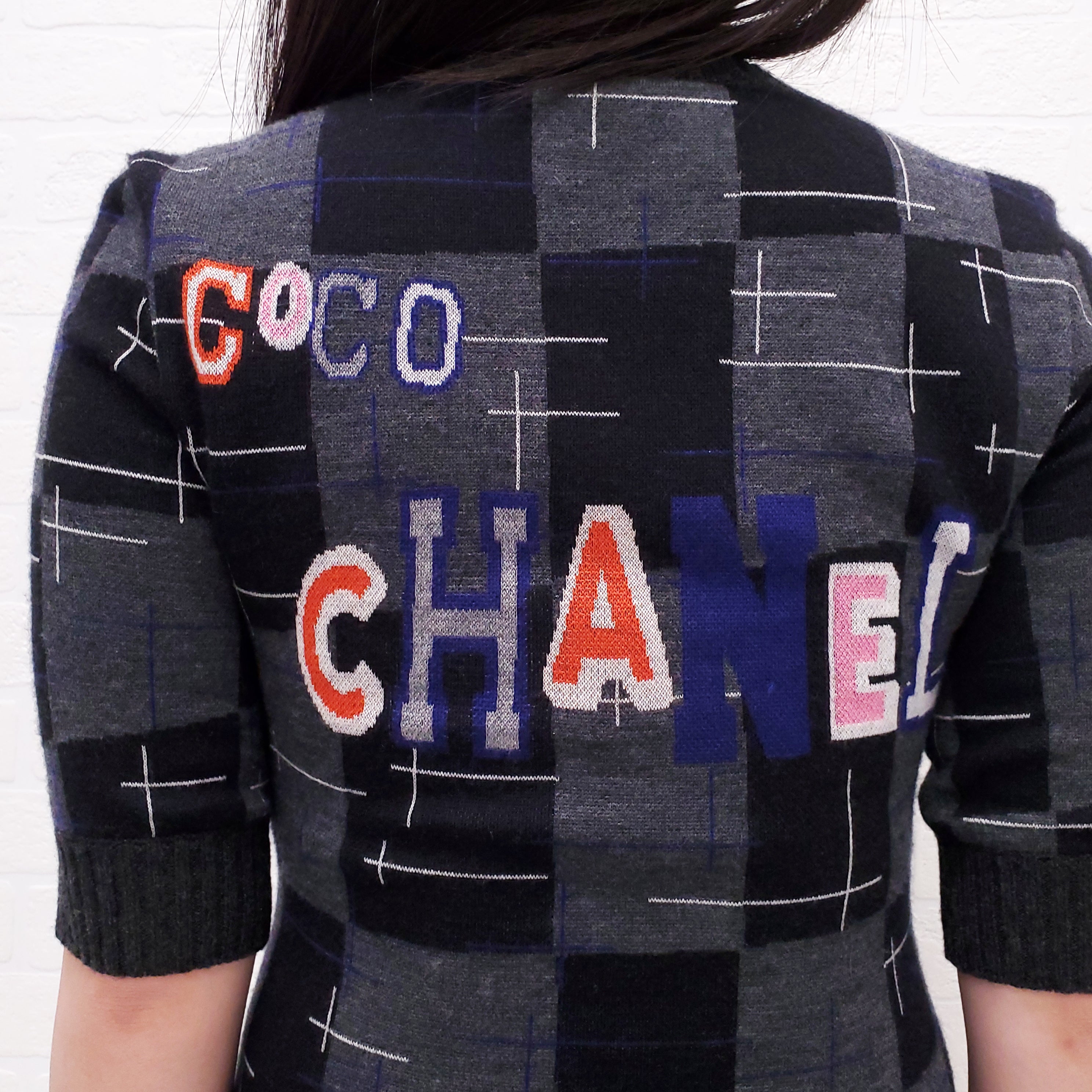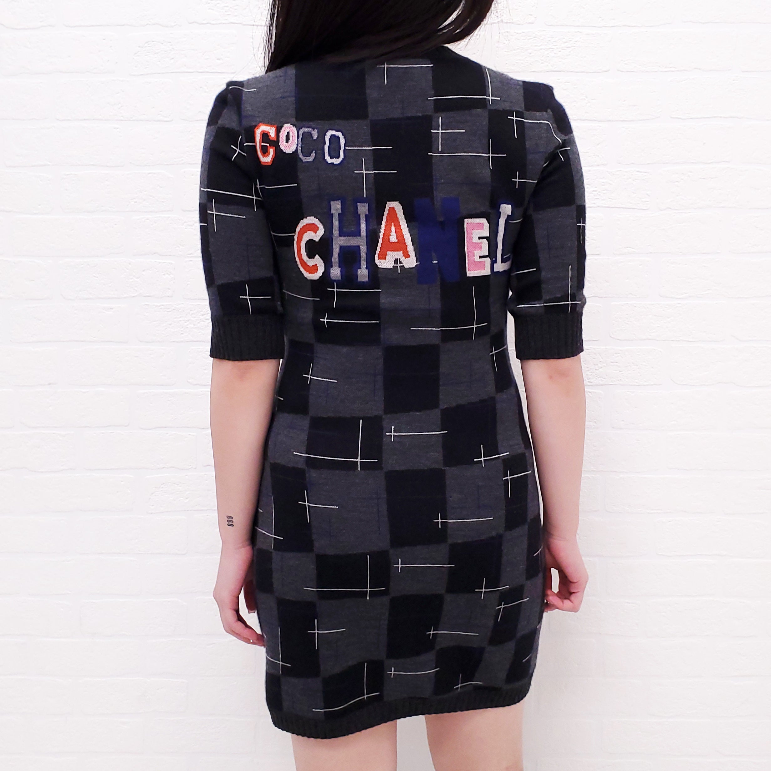 CHANEL 2021 GREY CASHMERE 'COCO CHANEL' LOGO DRESS - SIZE 34