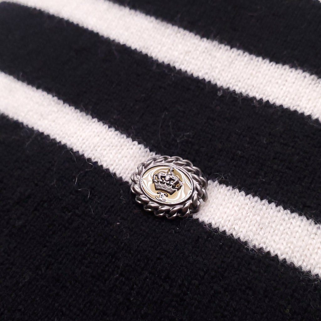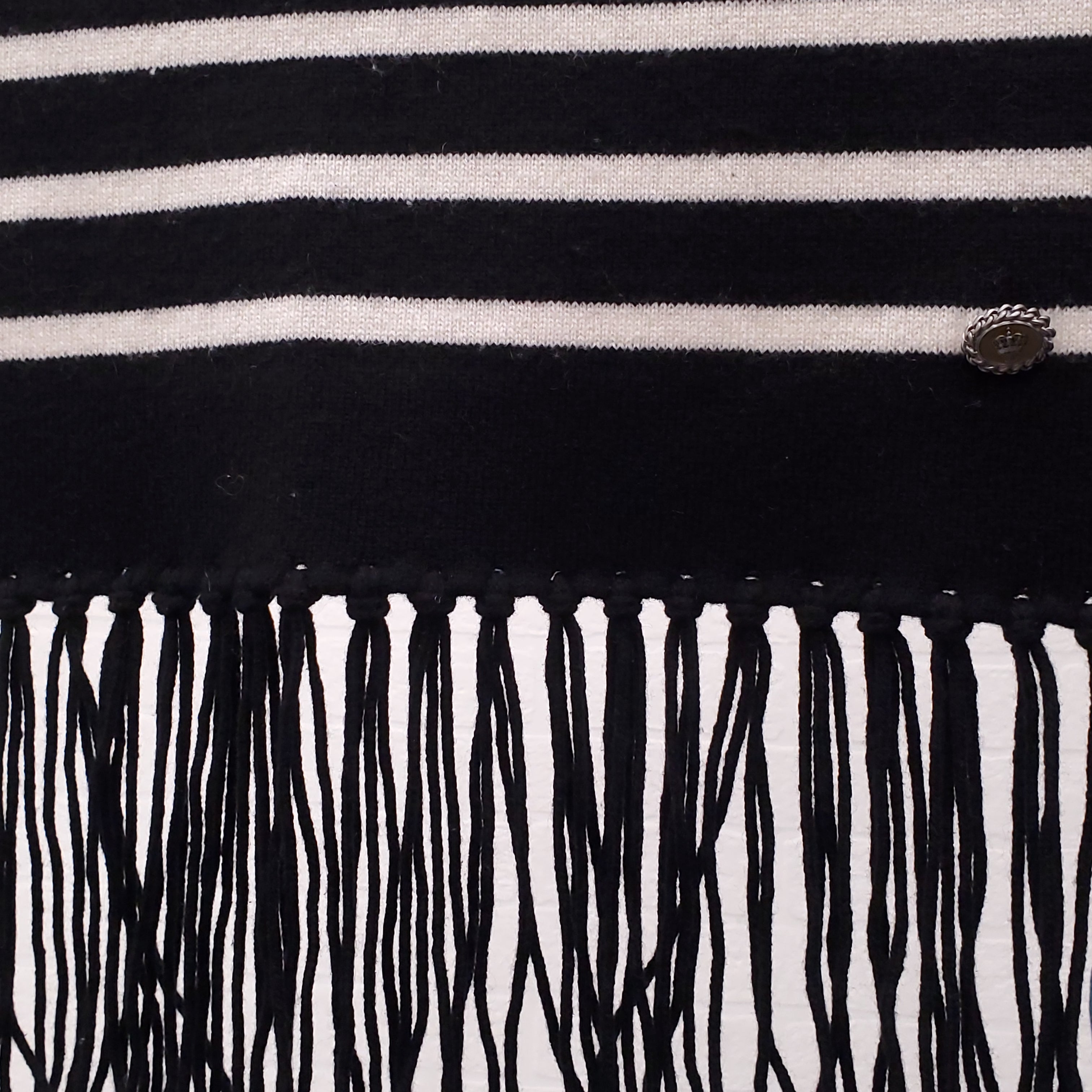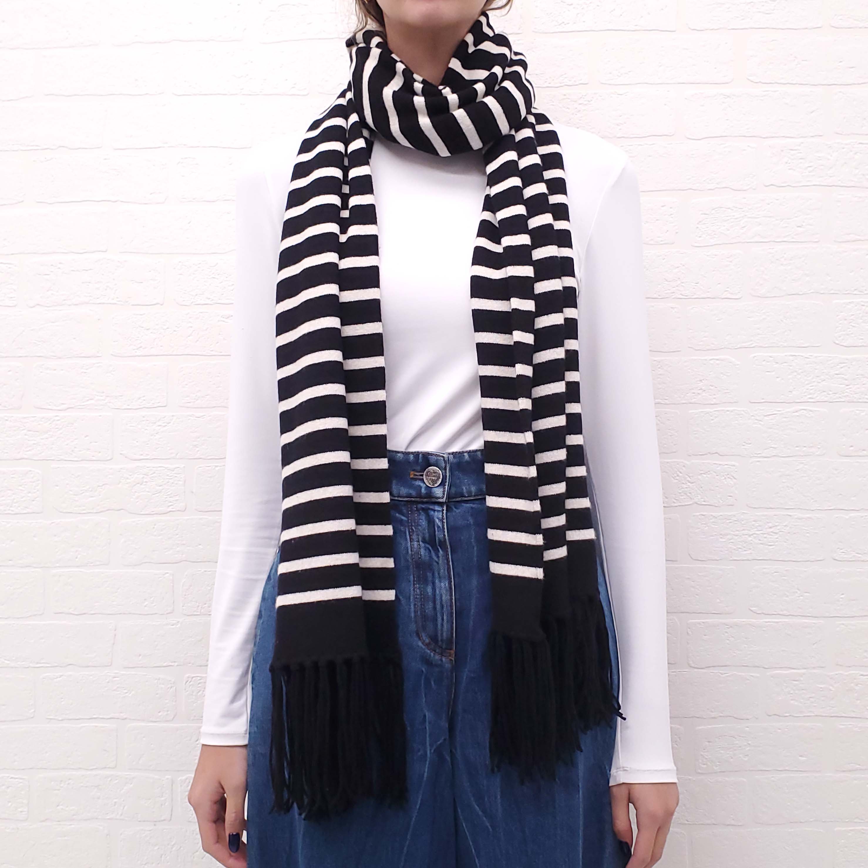 CHANEL BLACK AND WHITE STRIPED LOGO SCARF