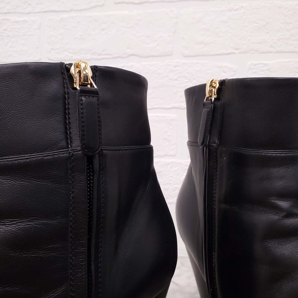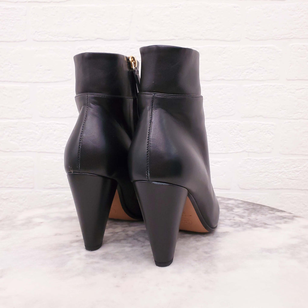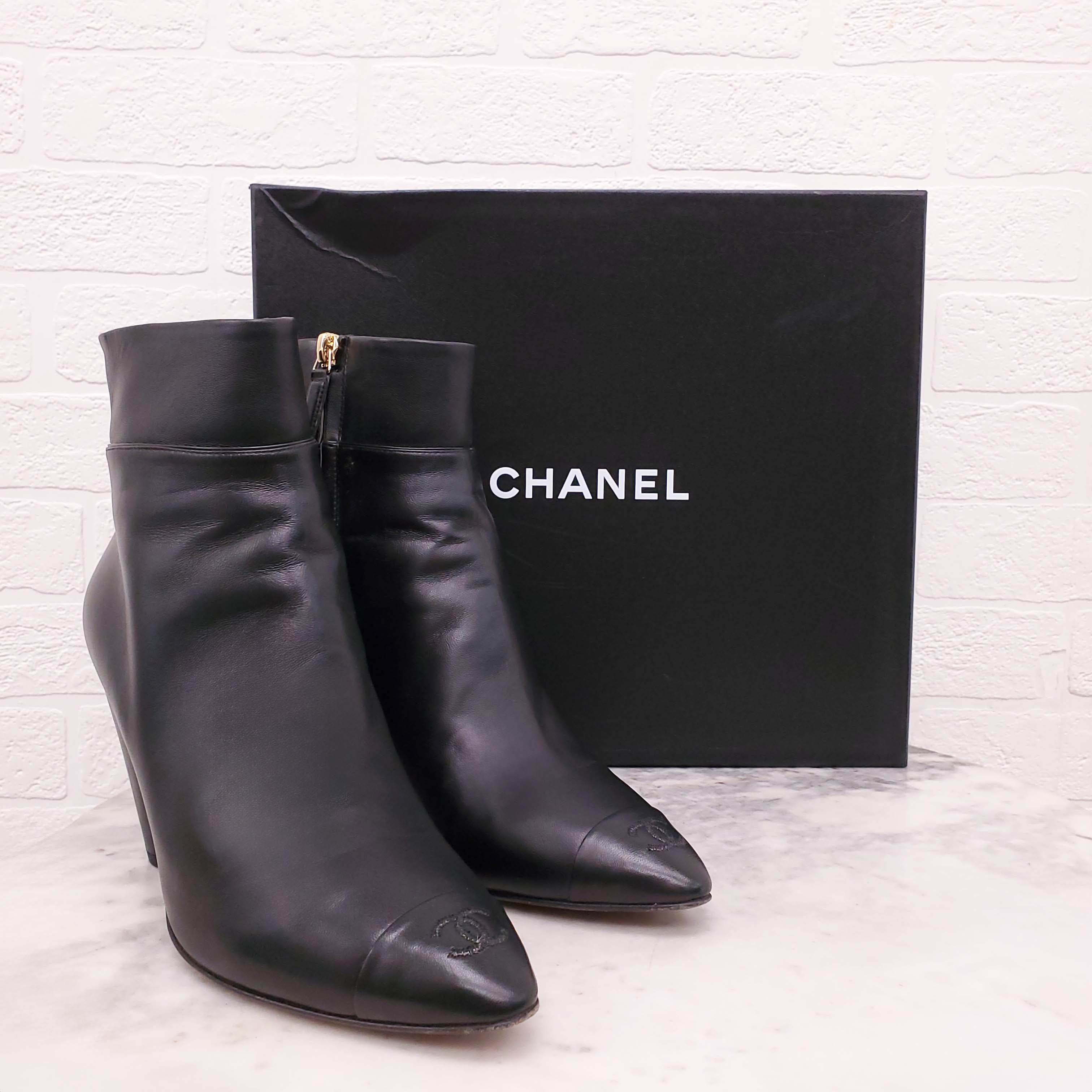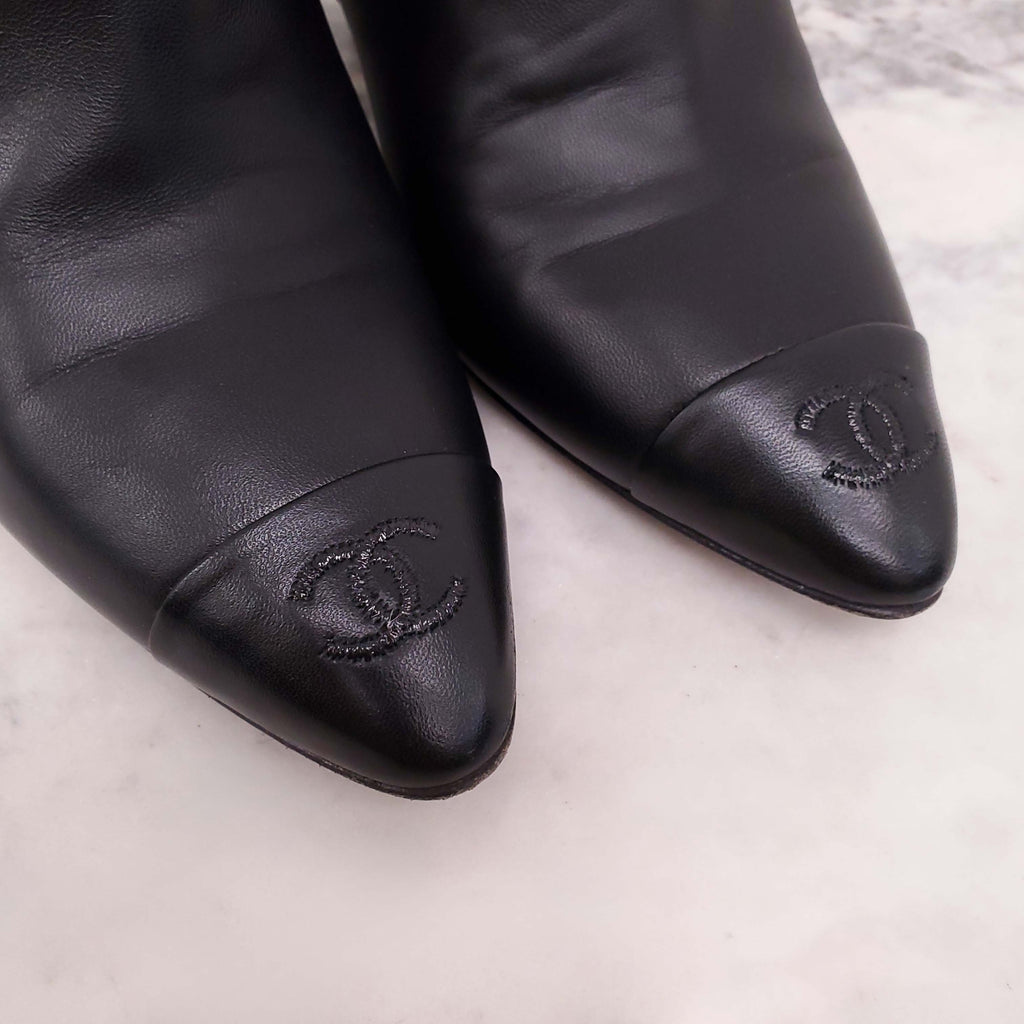 CHANEL BLACK LEATHER BOOTIES WITH LOGO CAP TOE - SIZE 39