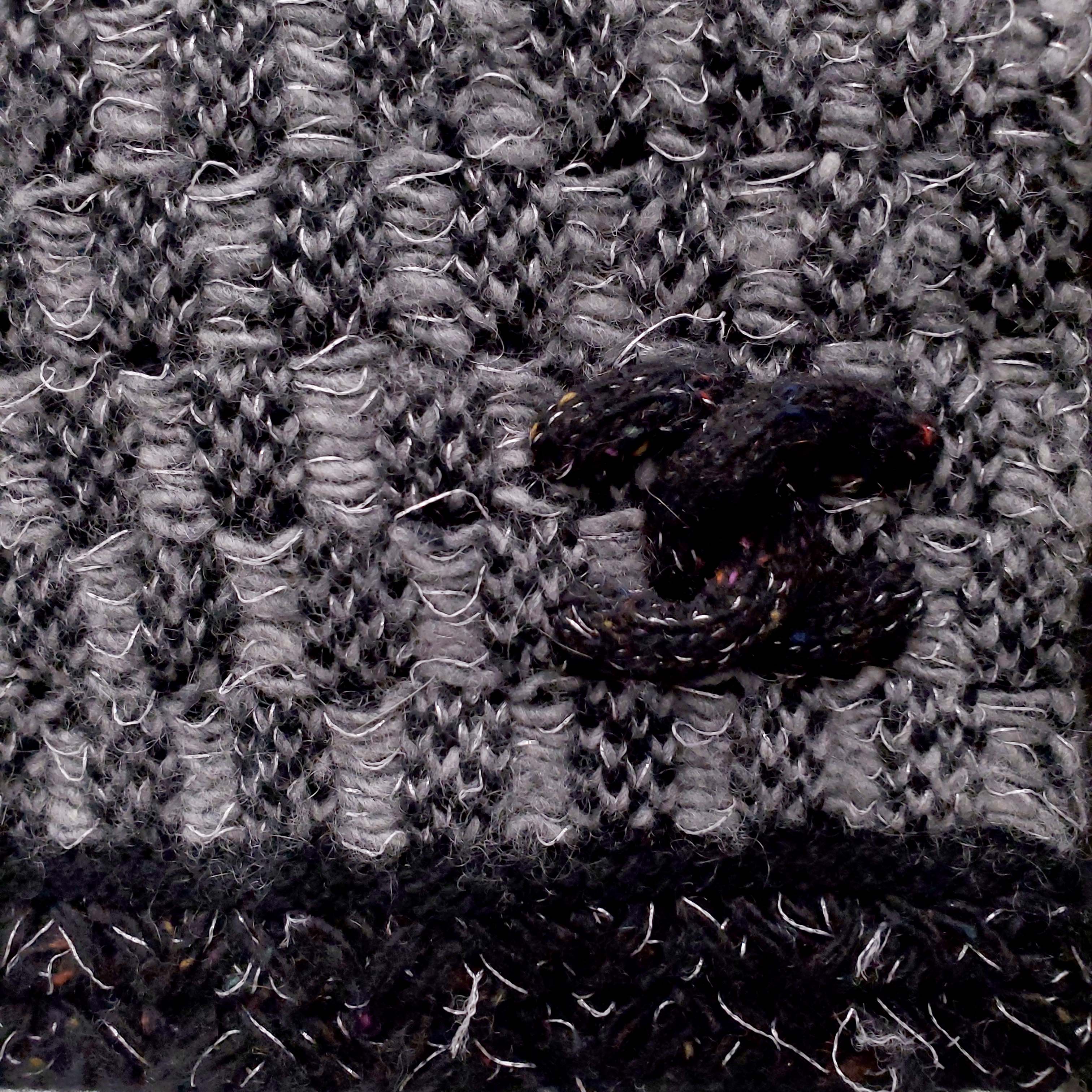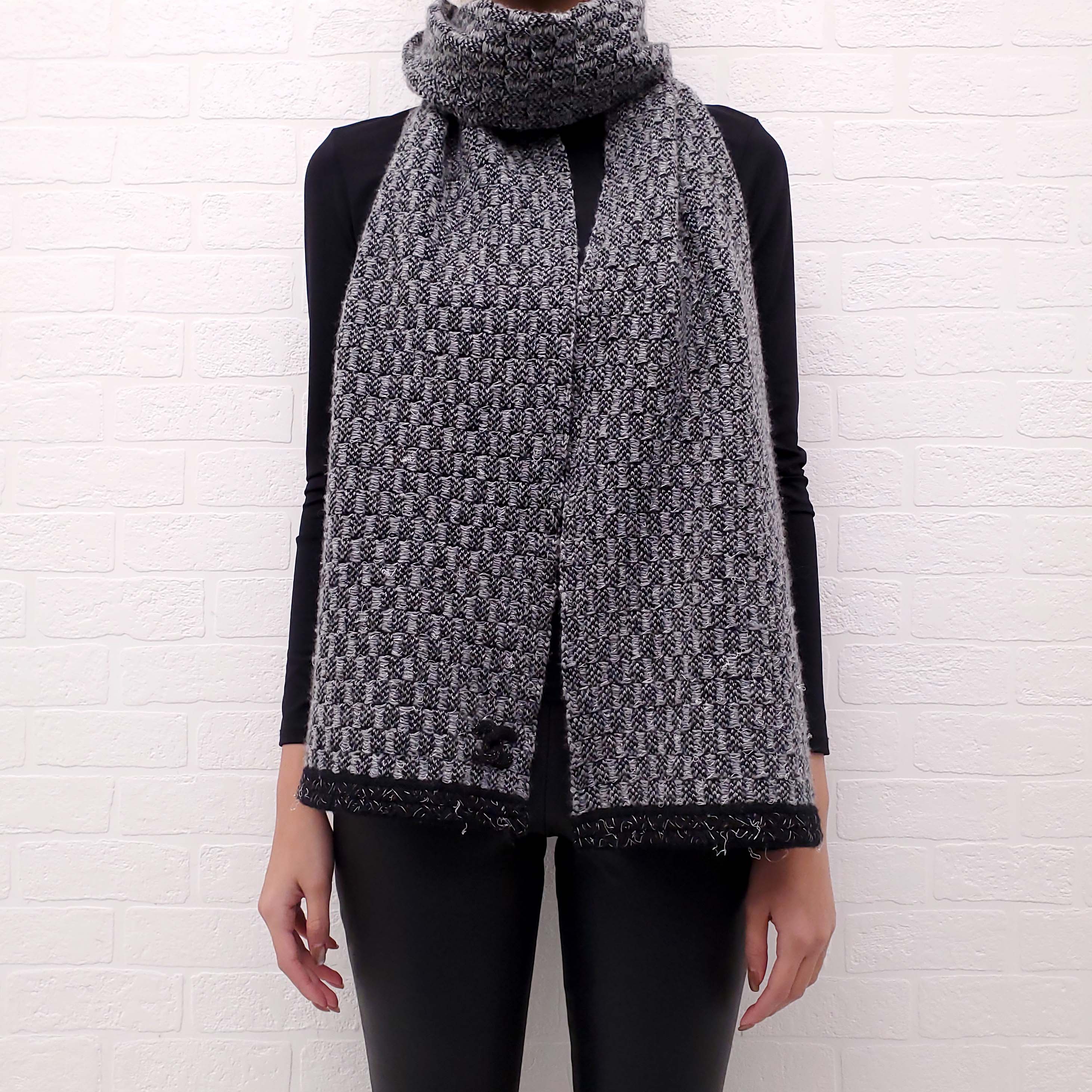 CHANEL BLACK AND GREY KNIT TWEED SCARF