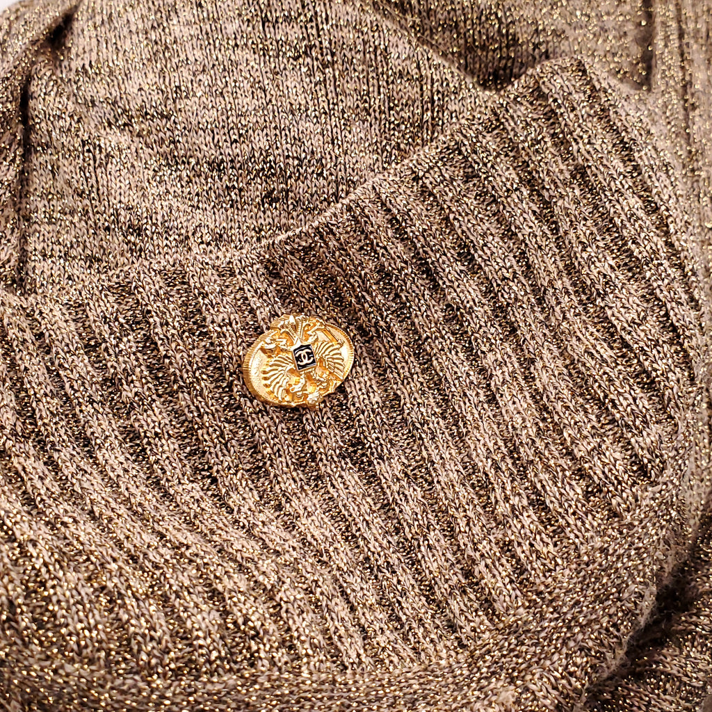 CHANEL GOLD METALLIC KNIT GOWN WITH HOOD - SIZE 36
