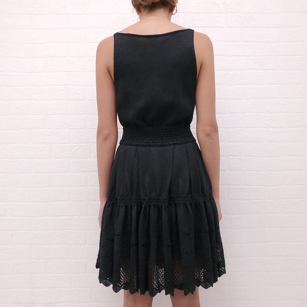 CHANEL GREY KNIT SYNCHED WAIST DRESS WITH CRYSTAL LOGO STRAP - SIZE 38
