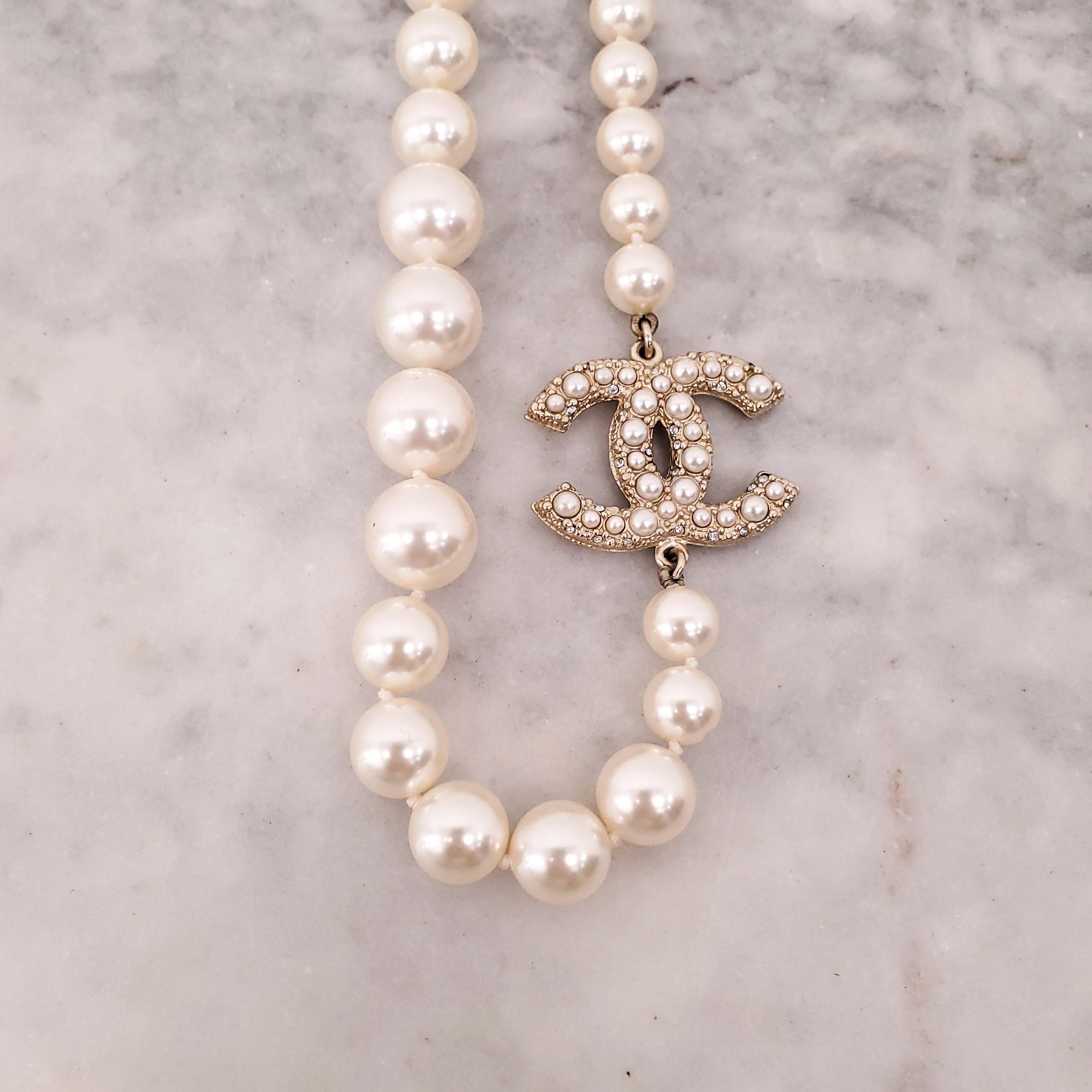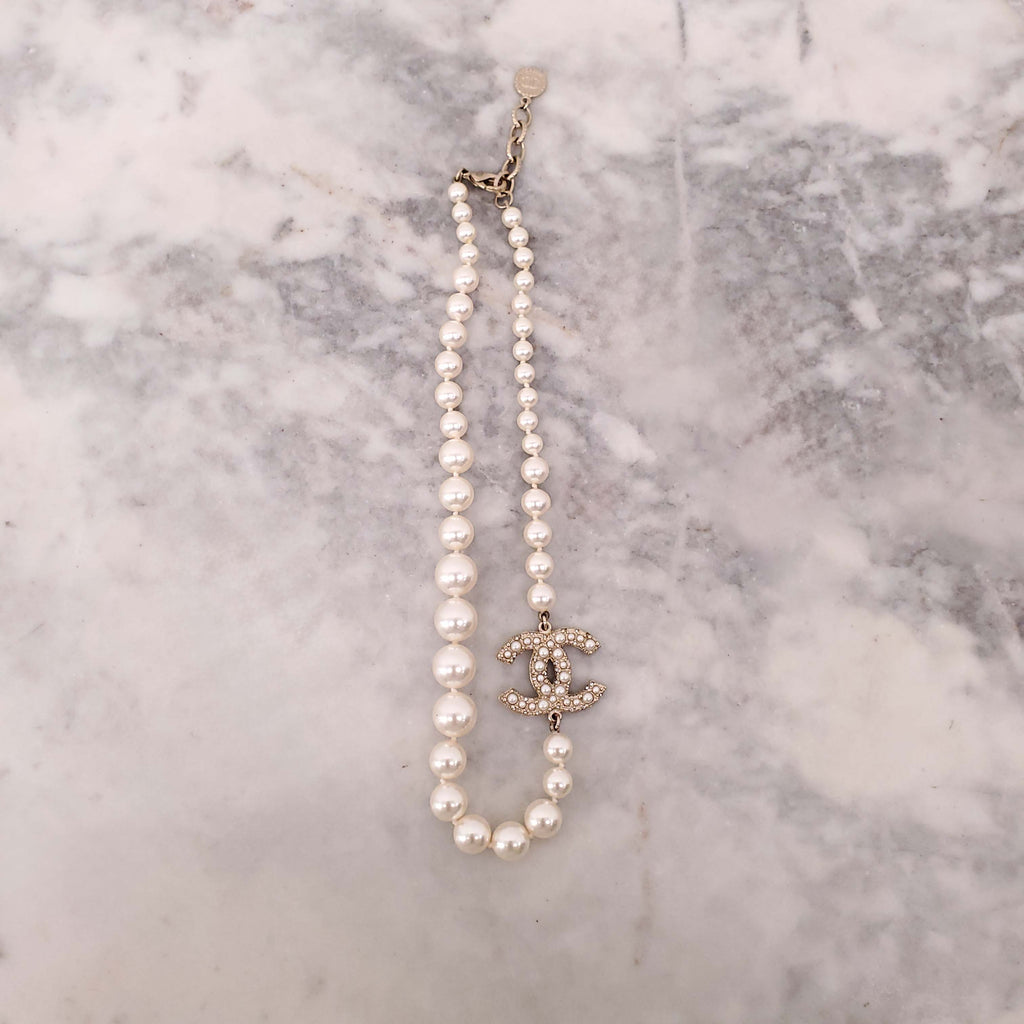 CHANEL PEARL NECKLACE WITH LARGE LOGO