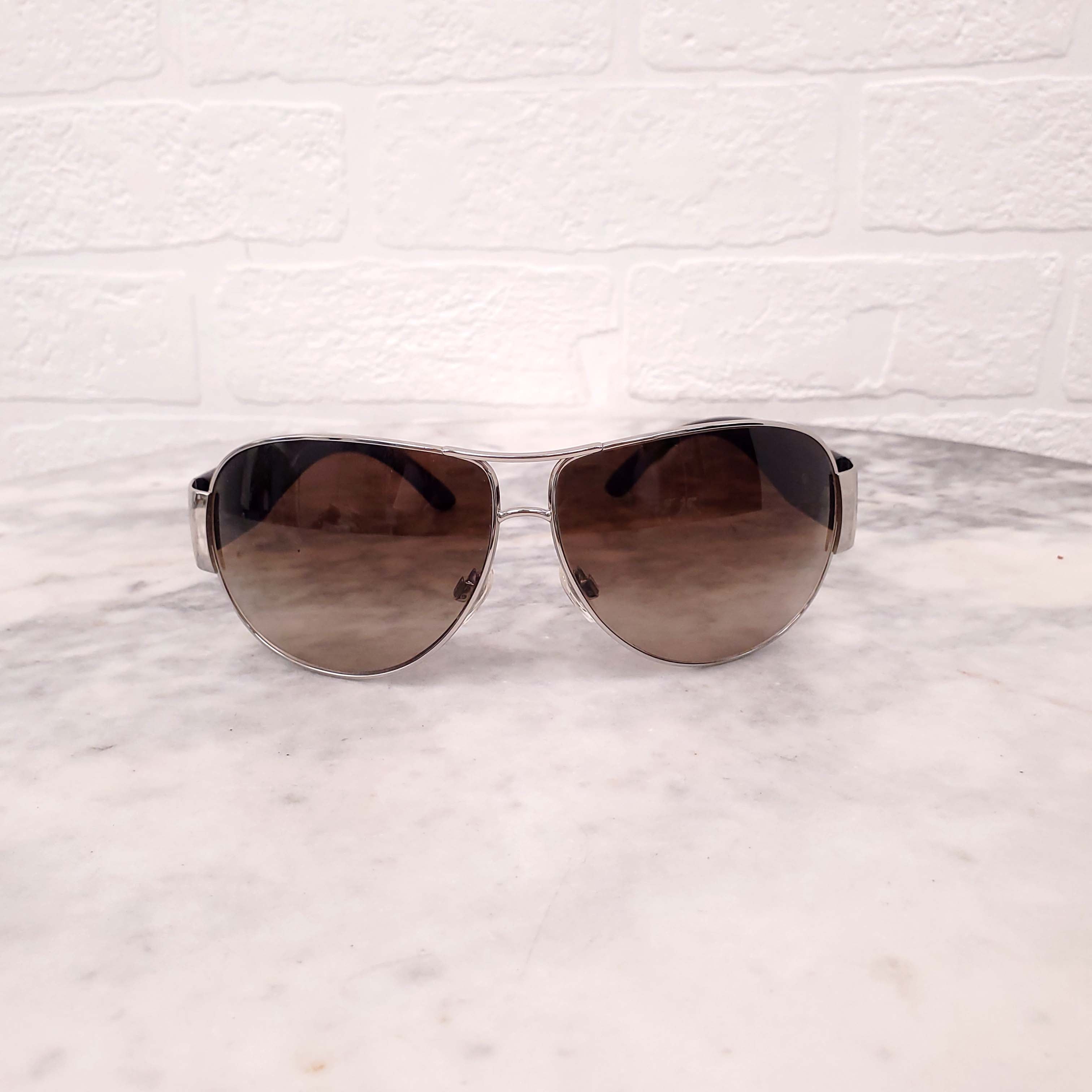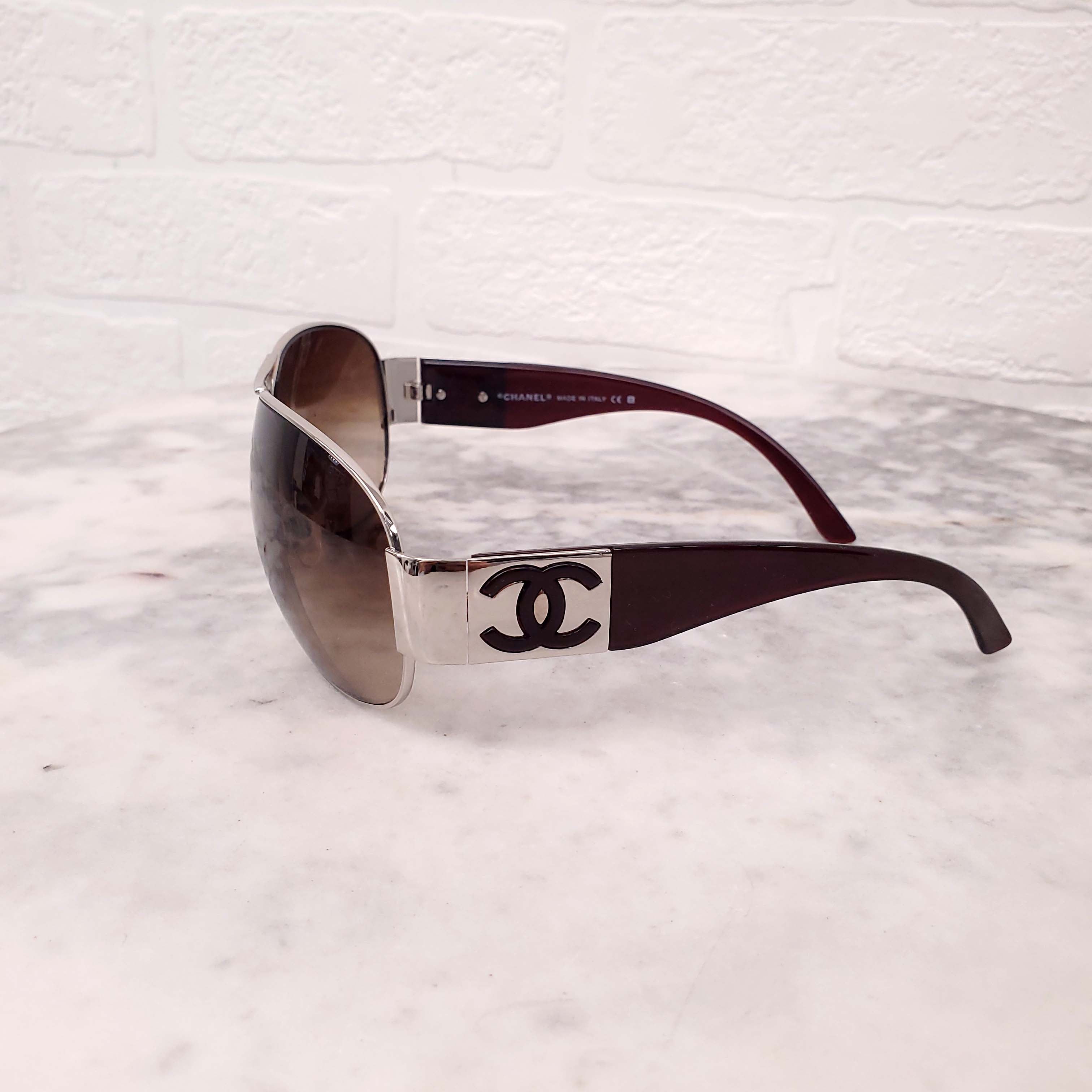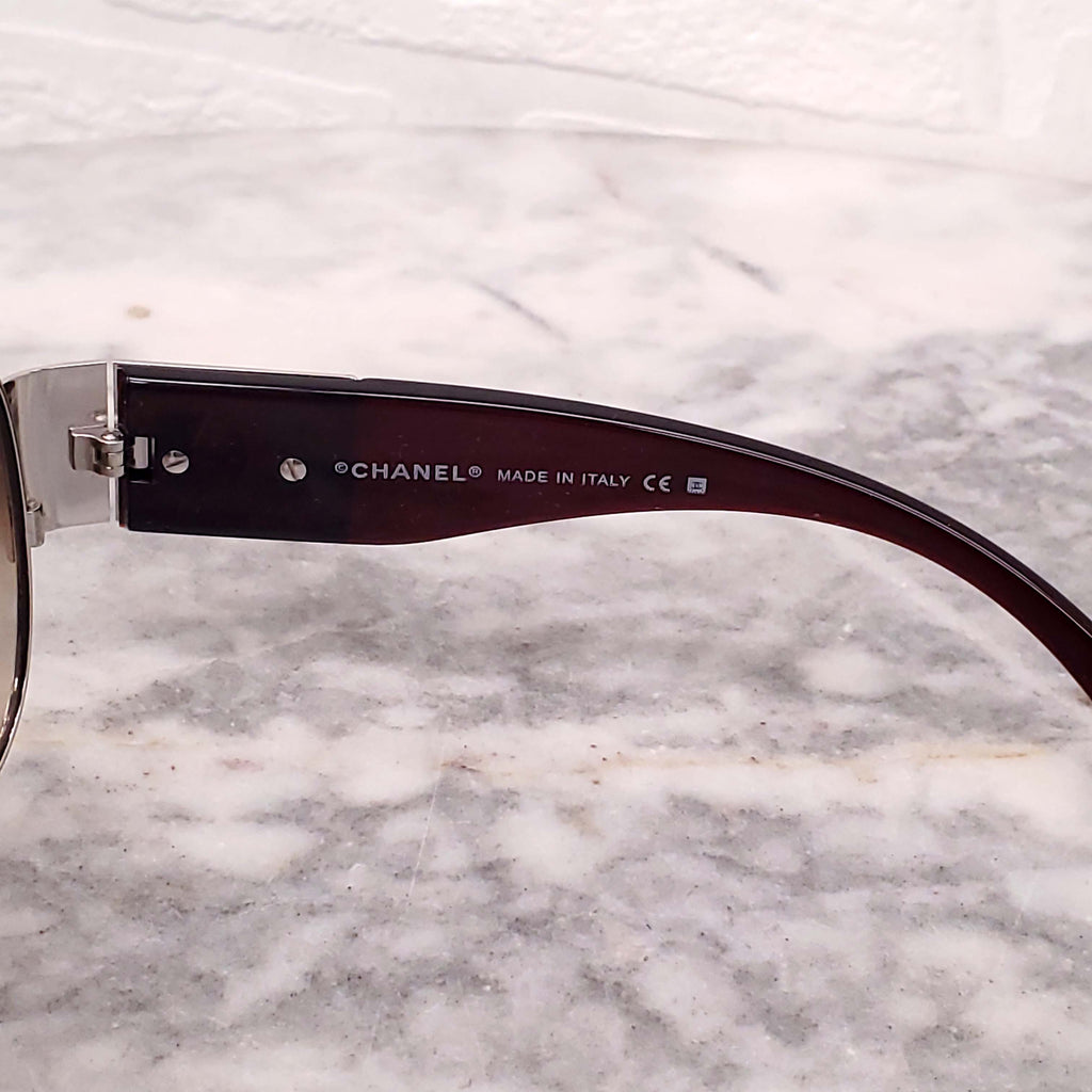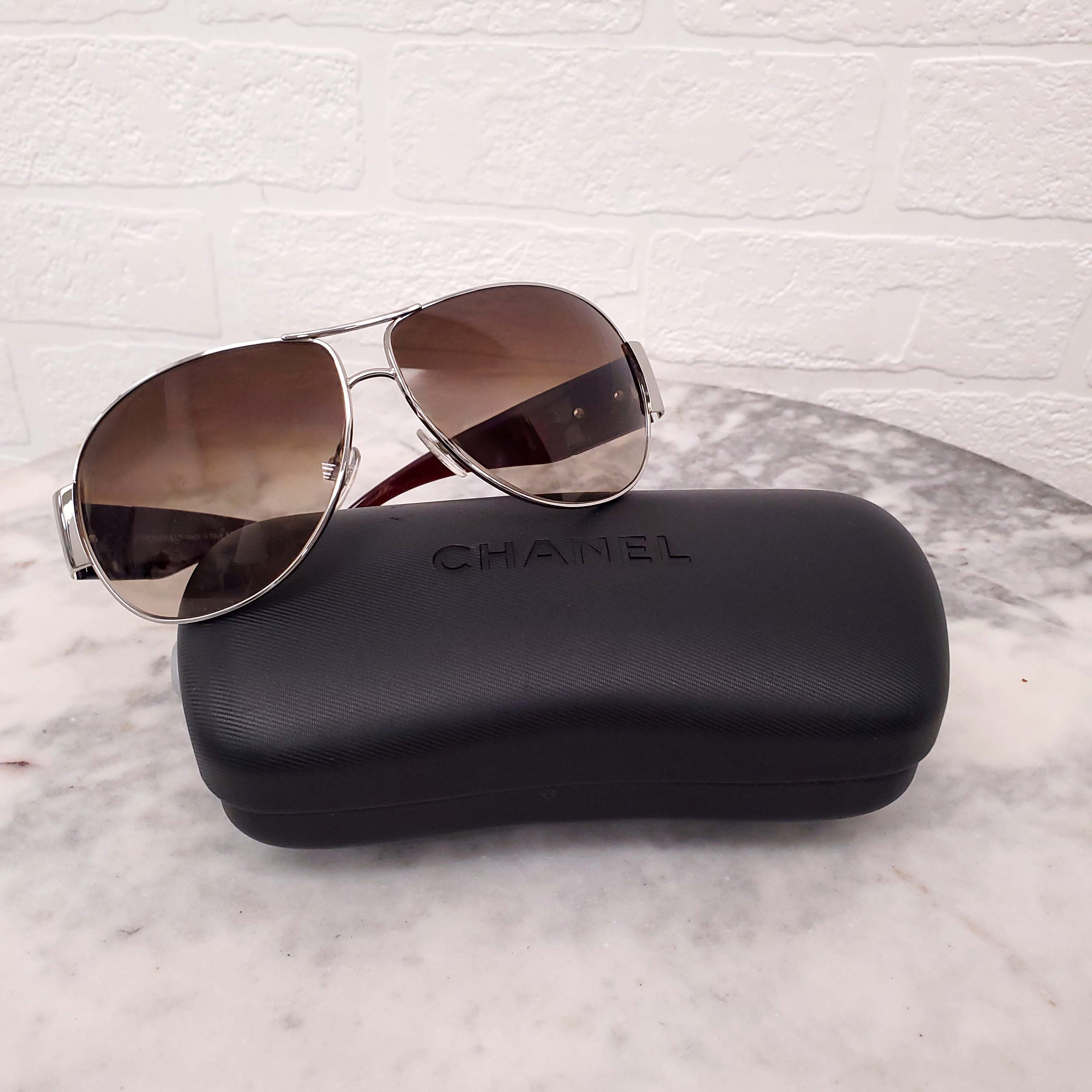 CHANEL SILVER AND BURGUNDY LOGO AVIATOR SUNGLASSES