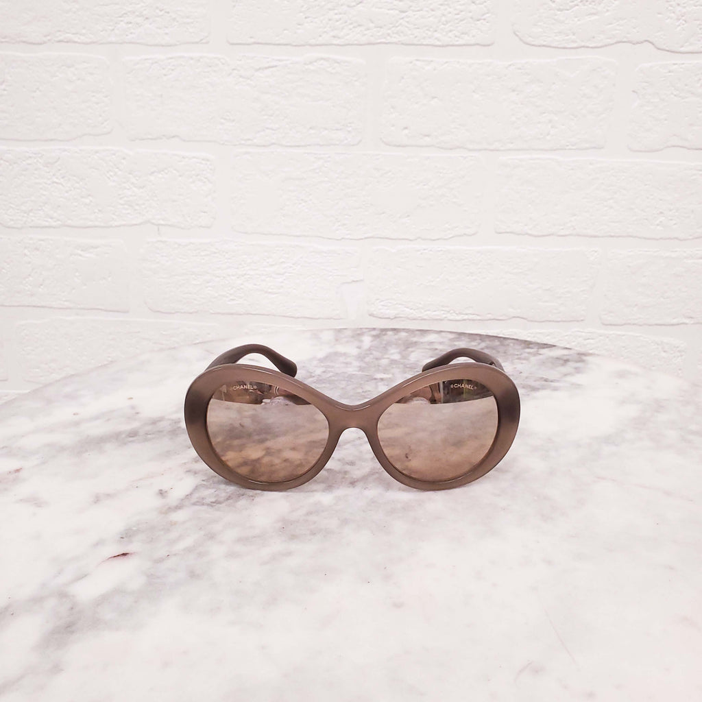 CHANEL TAUPE ROUND SUNGLASSES WITH REFLECTIVE LENSES
