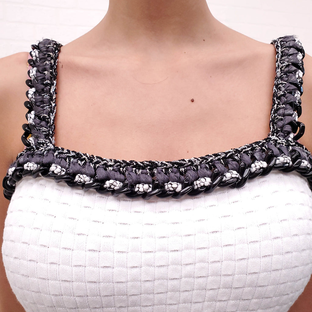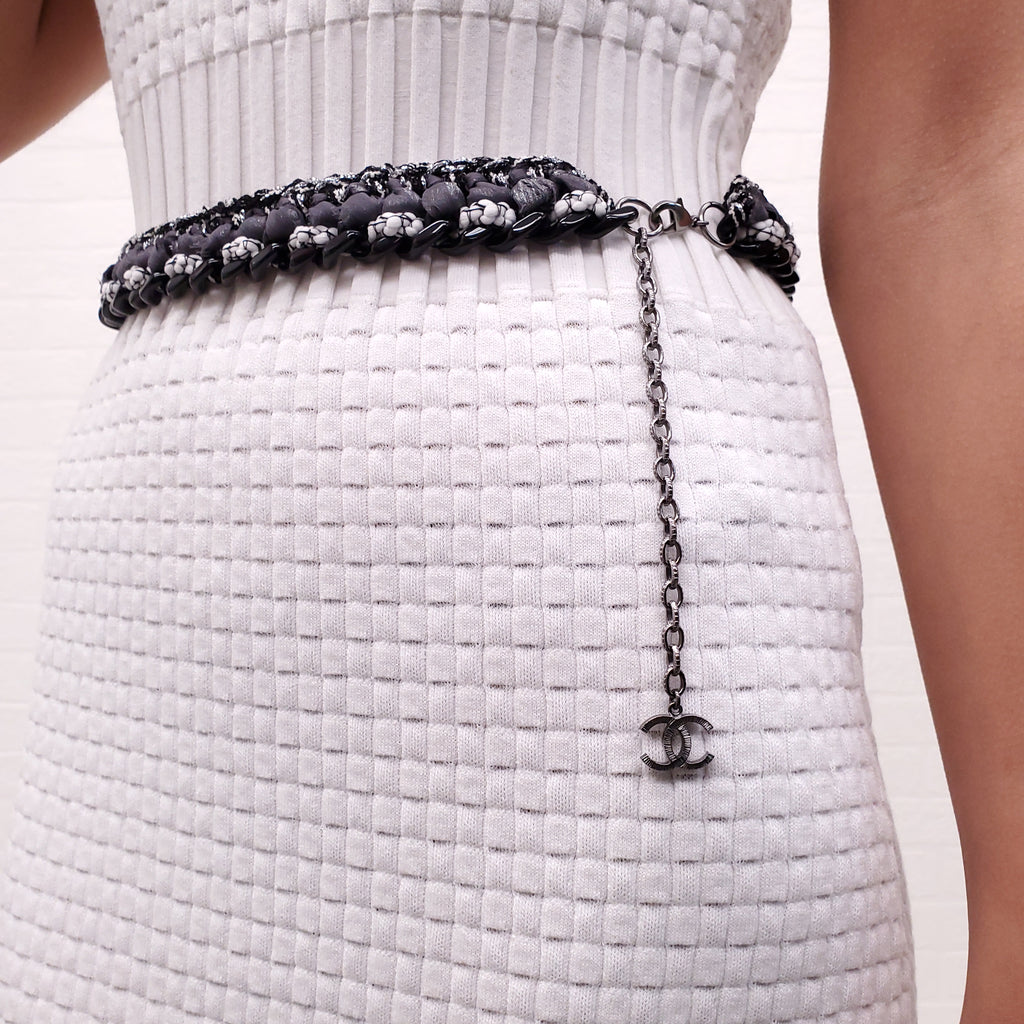 CHANEL WHITE AND METALLIC TWEEC CHAIN DRESS WITH BELT - SIZE 40