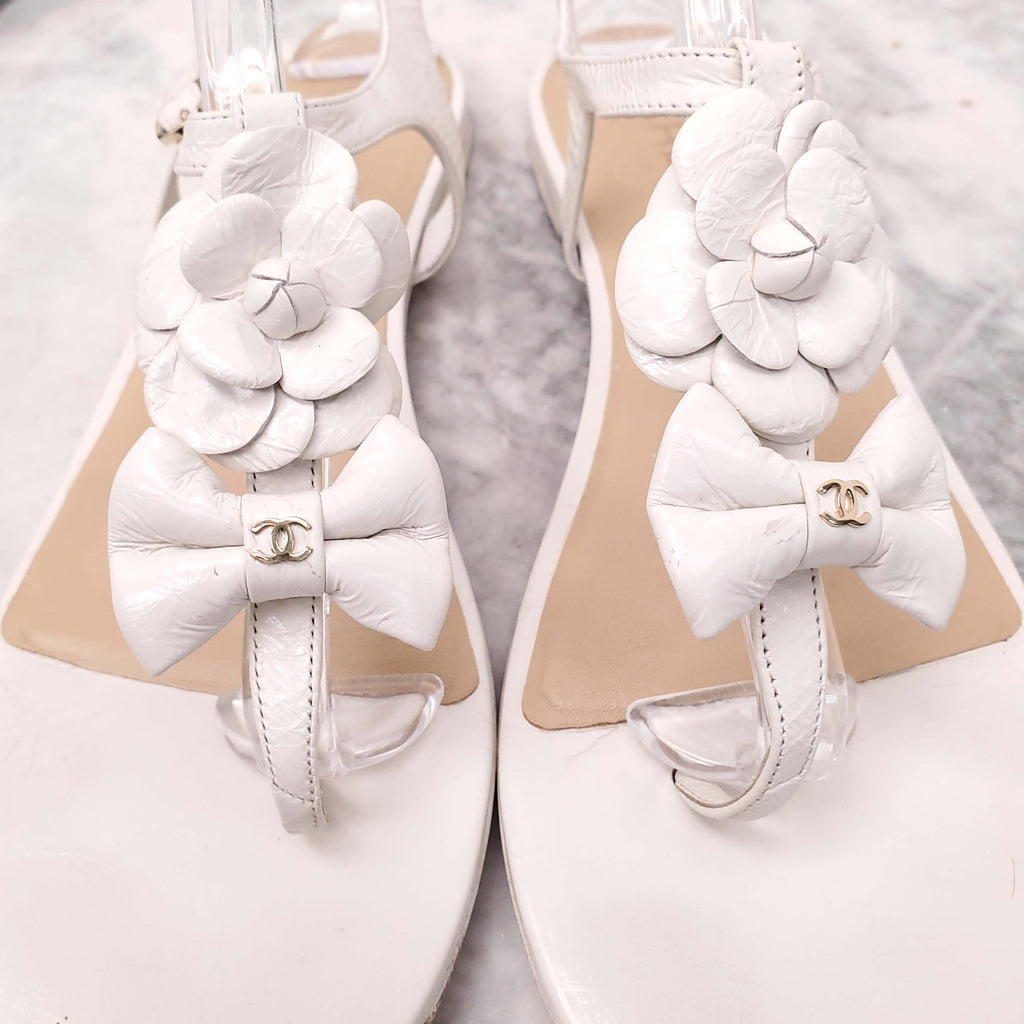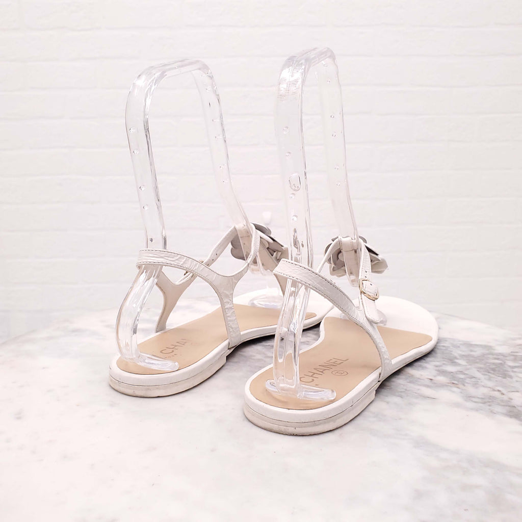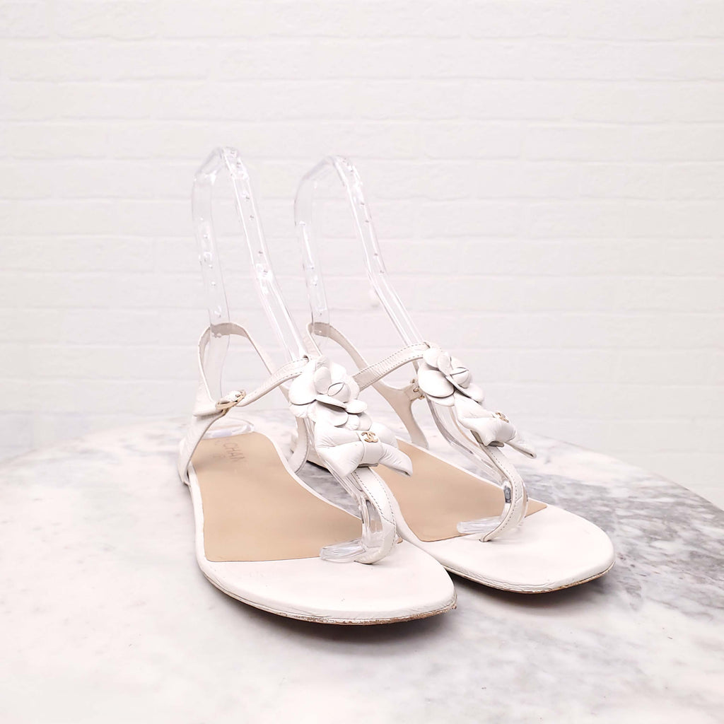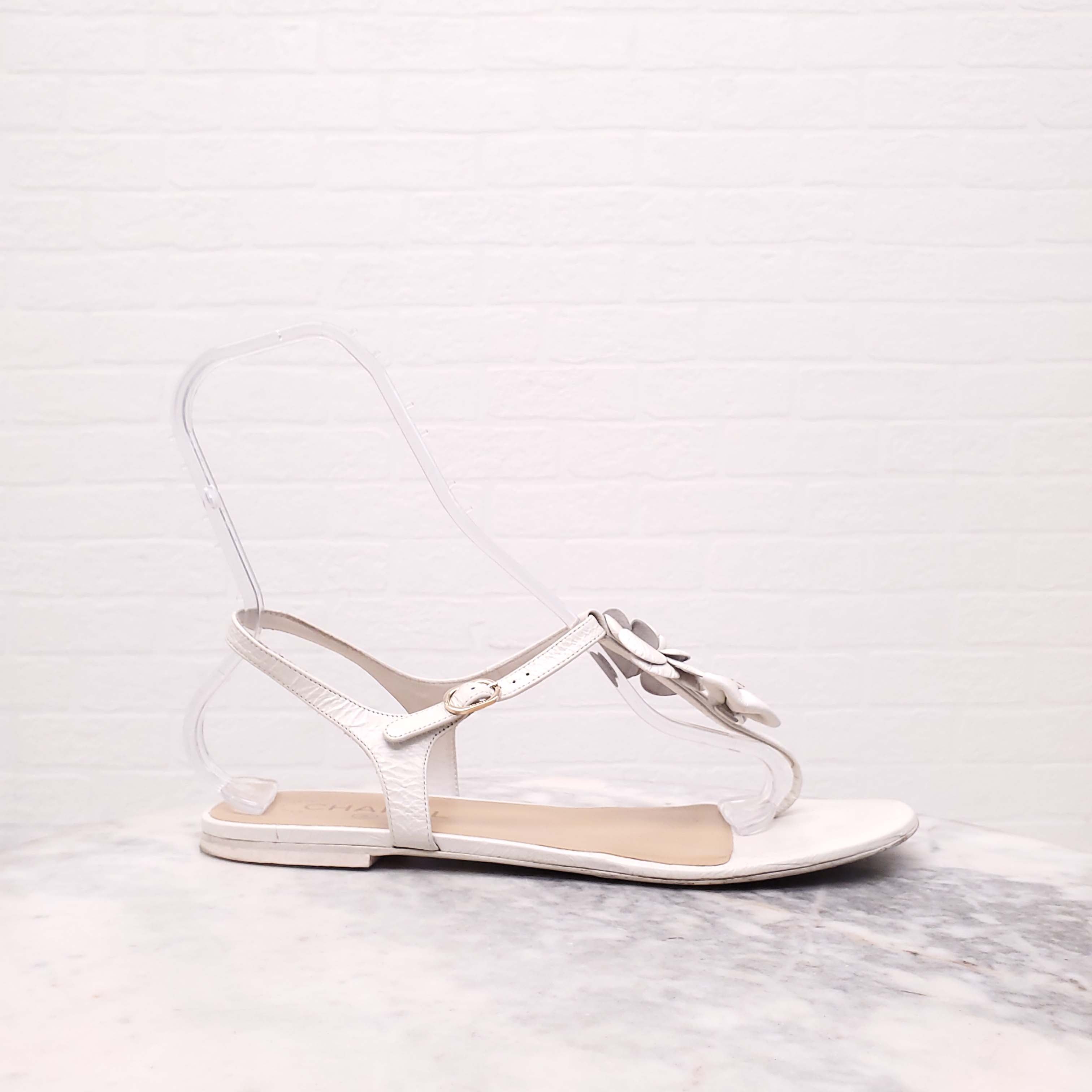 CHANEL WHITE FLORAL SANDALS - SIZE 41.5
