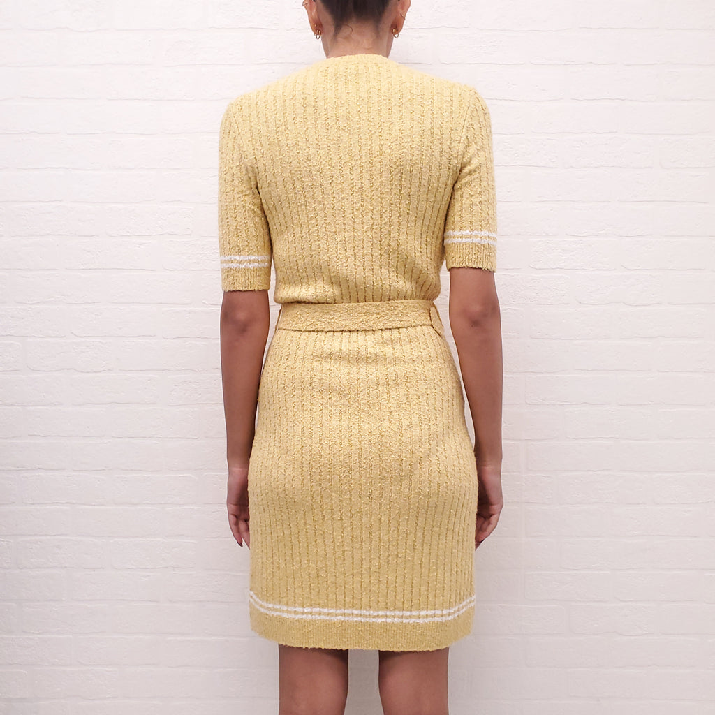 CHANEL YELLOW SHORT SLEEVE KNIT DRESS WITH BELT - SIZE 36