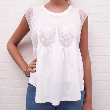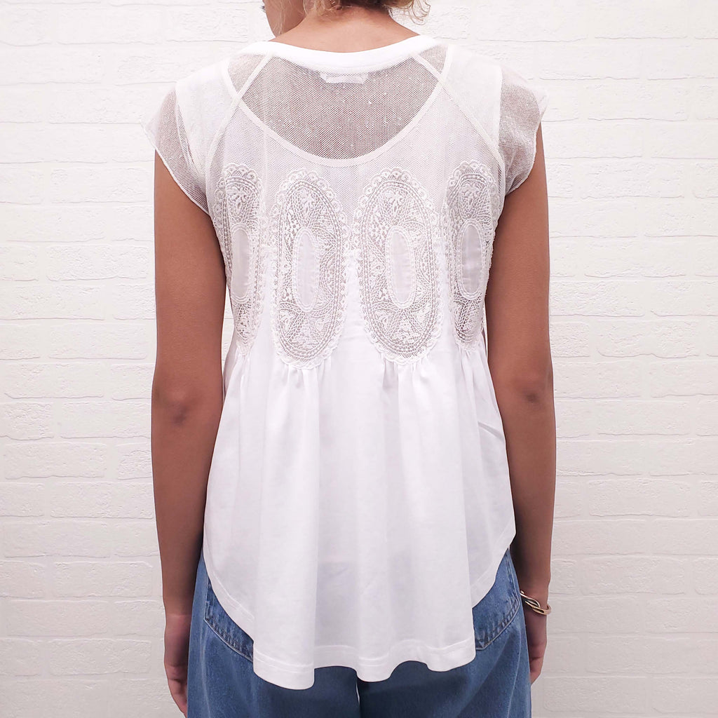 CHLOÉ T-SHIRT WITH CREAM LACE DETAIL - SIZE s