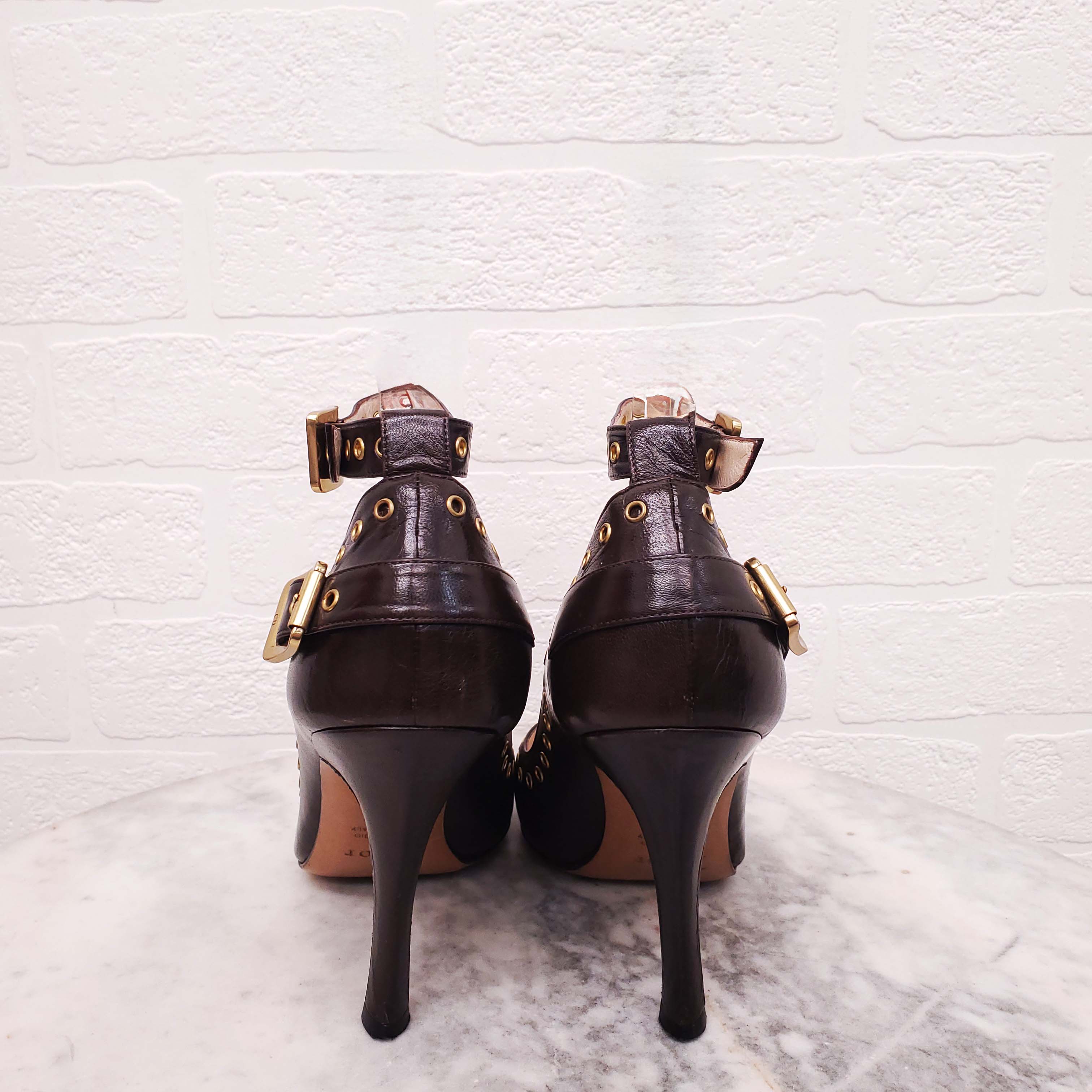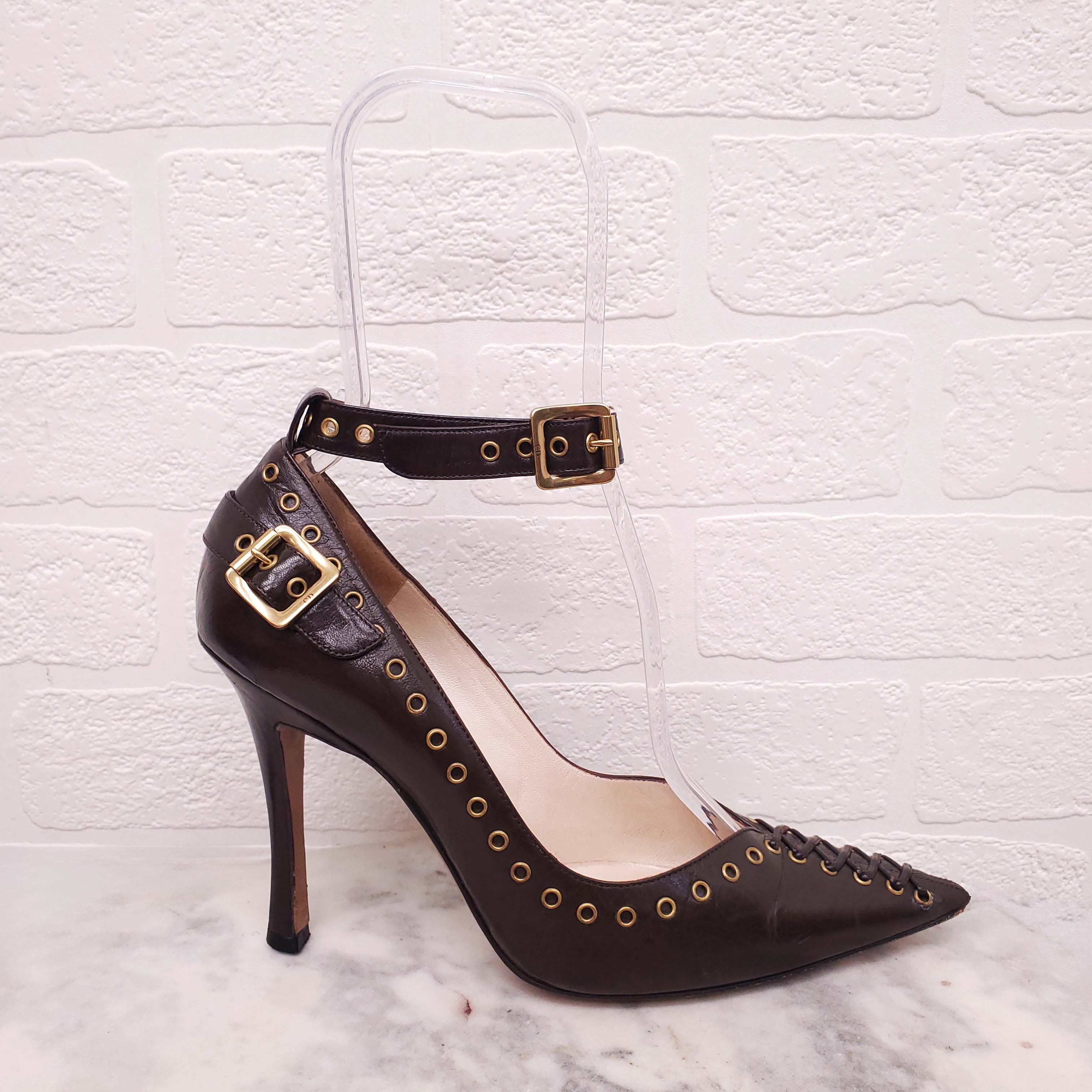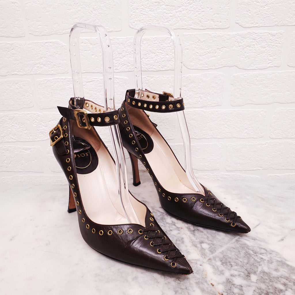 CHRISTIAN DIOR BROWN LEATHER LACE UP HEELS - SIZE 38
