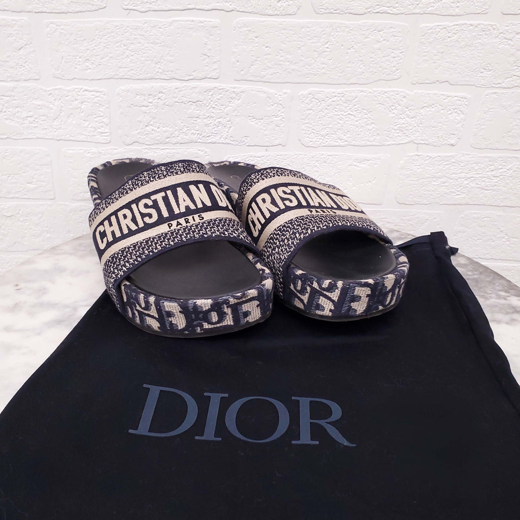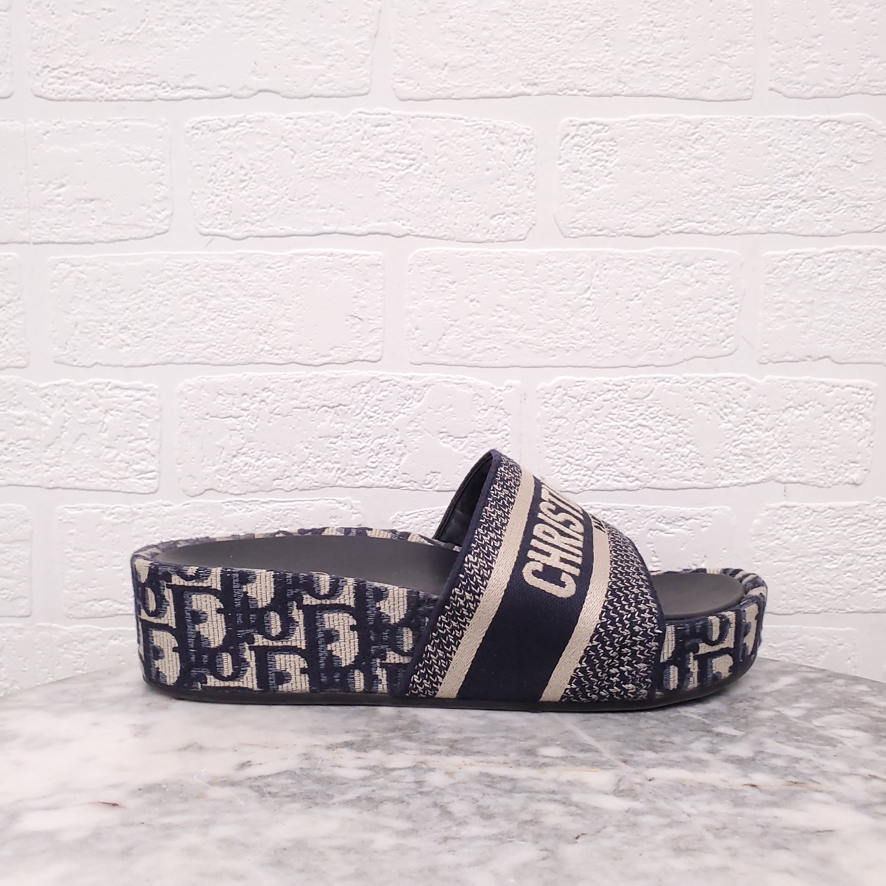 CHRISTIAN DIOR OBLIQUE LOGO PLATFORM SLIDES - SIZE 41