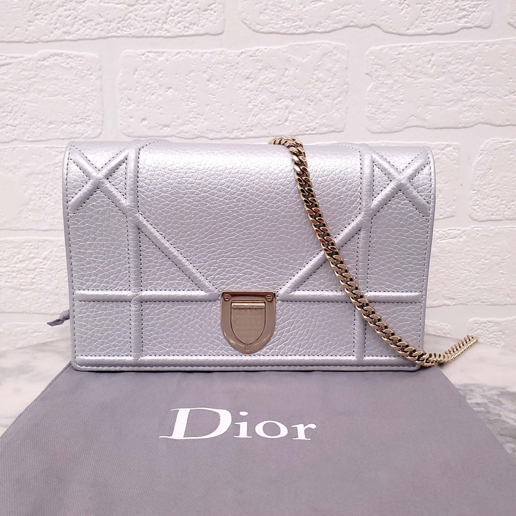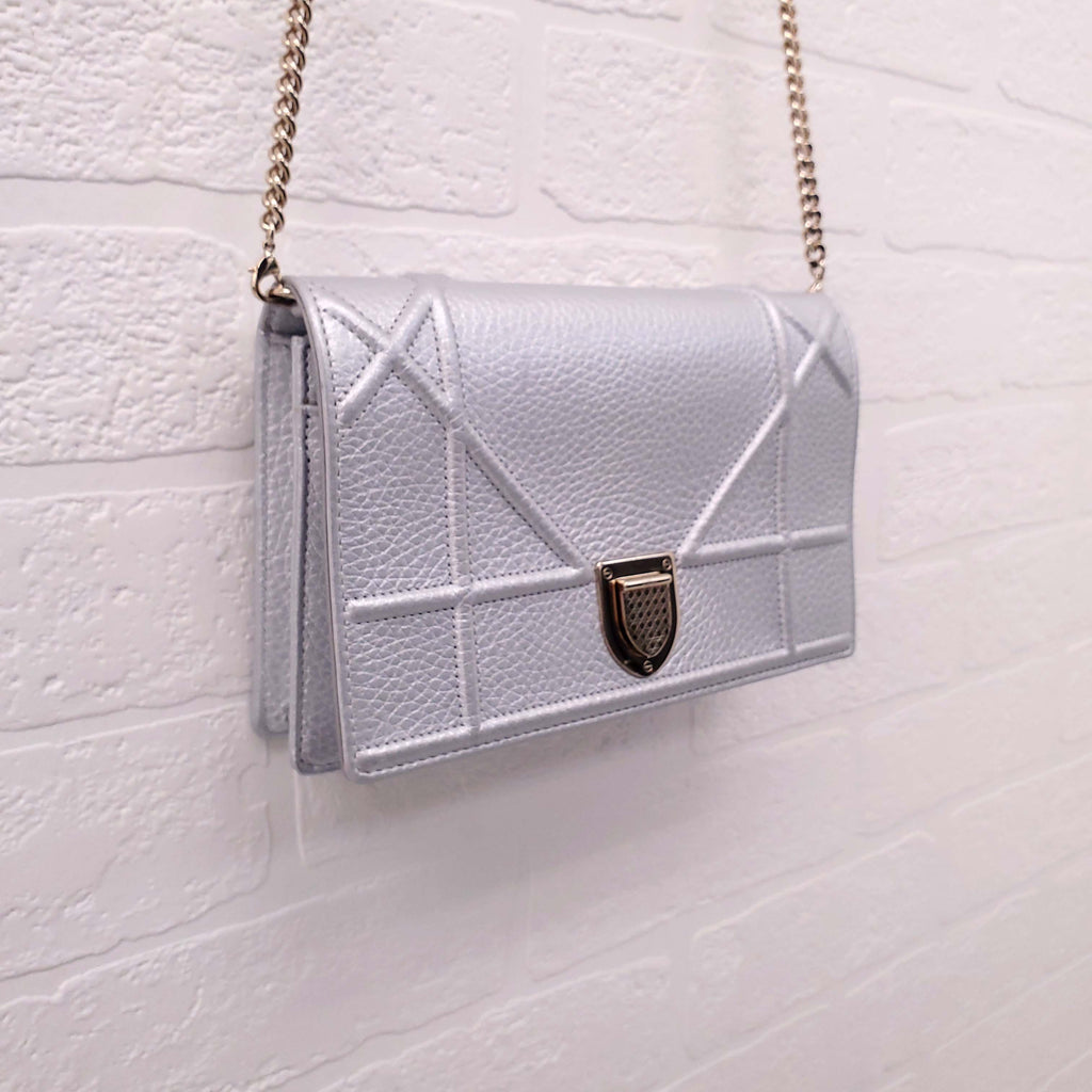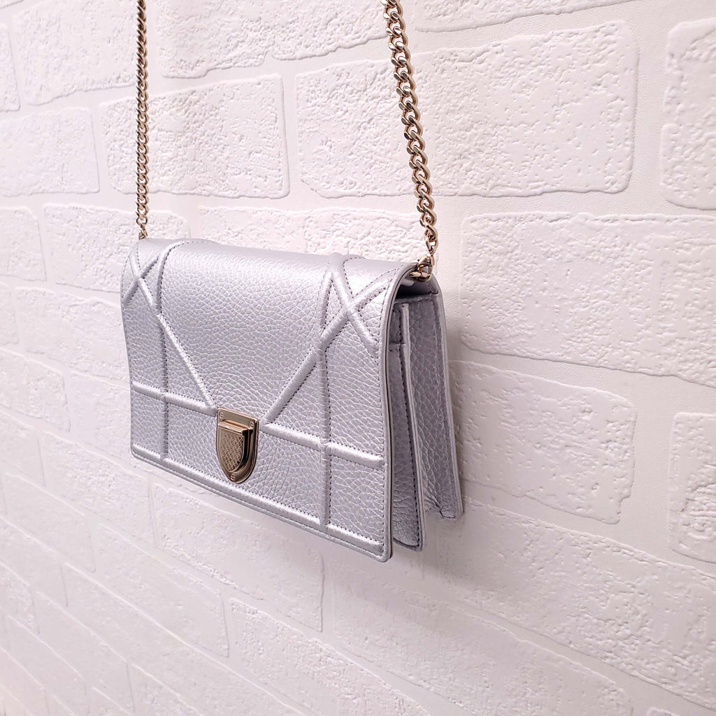 CHRISTIAN DIOR SILVER WALLET ON CHAIN