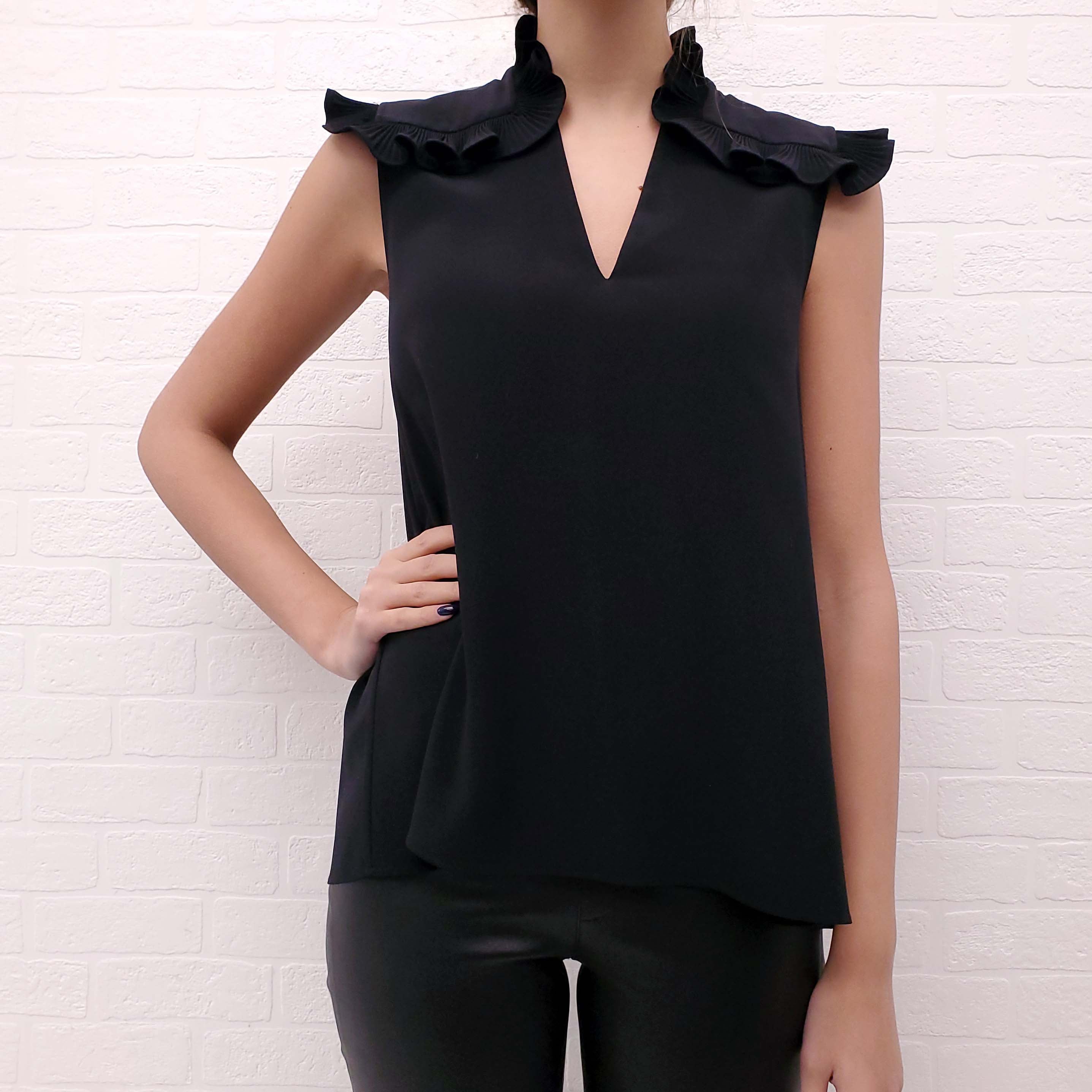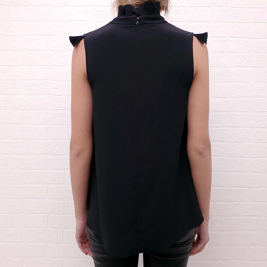 CO BLACK SLEEVELESS RUFFLE BLOUSE - SIZE S
