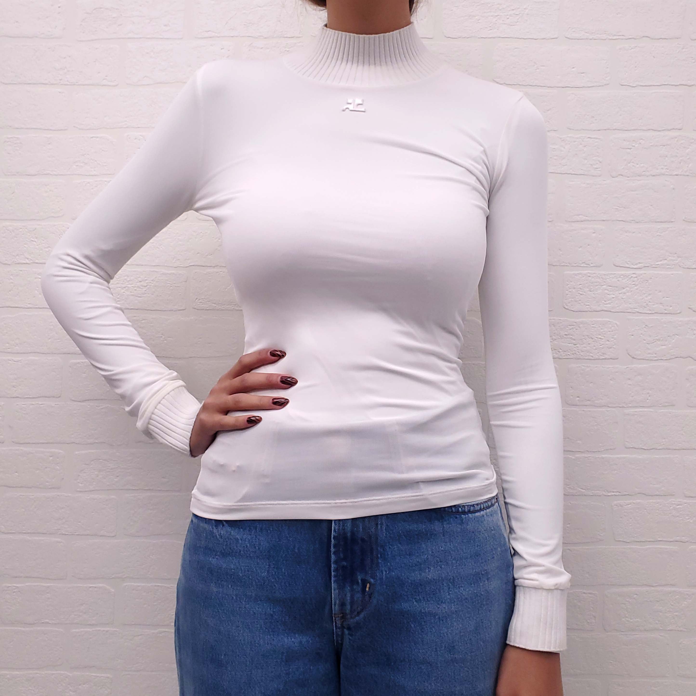 COURRÈGES 'RE-EDITION SECOND SKIN' LOGO TOP - SIZE S