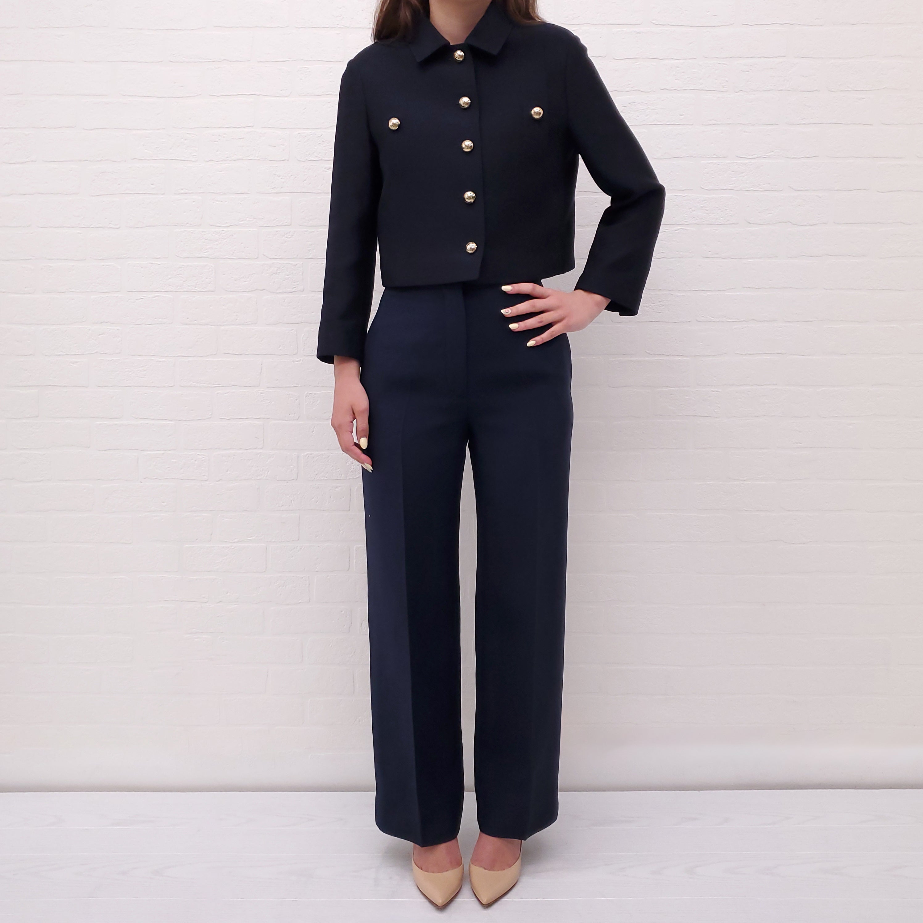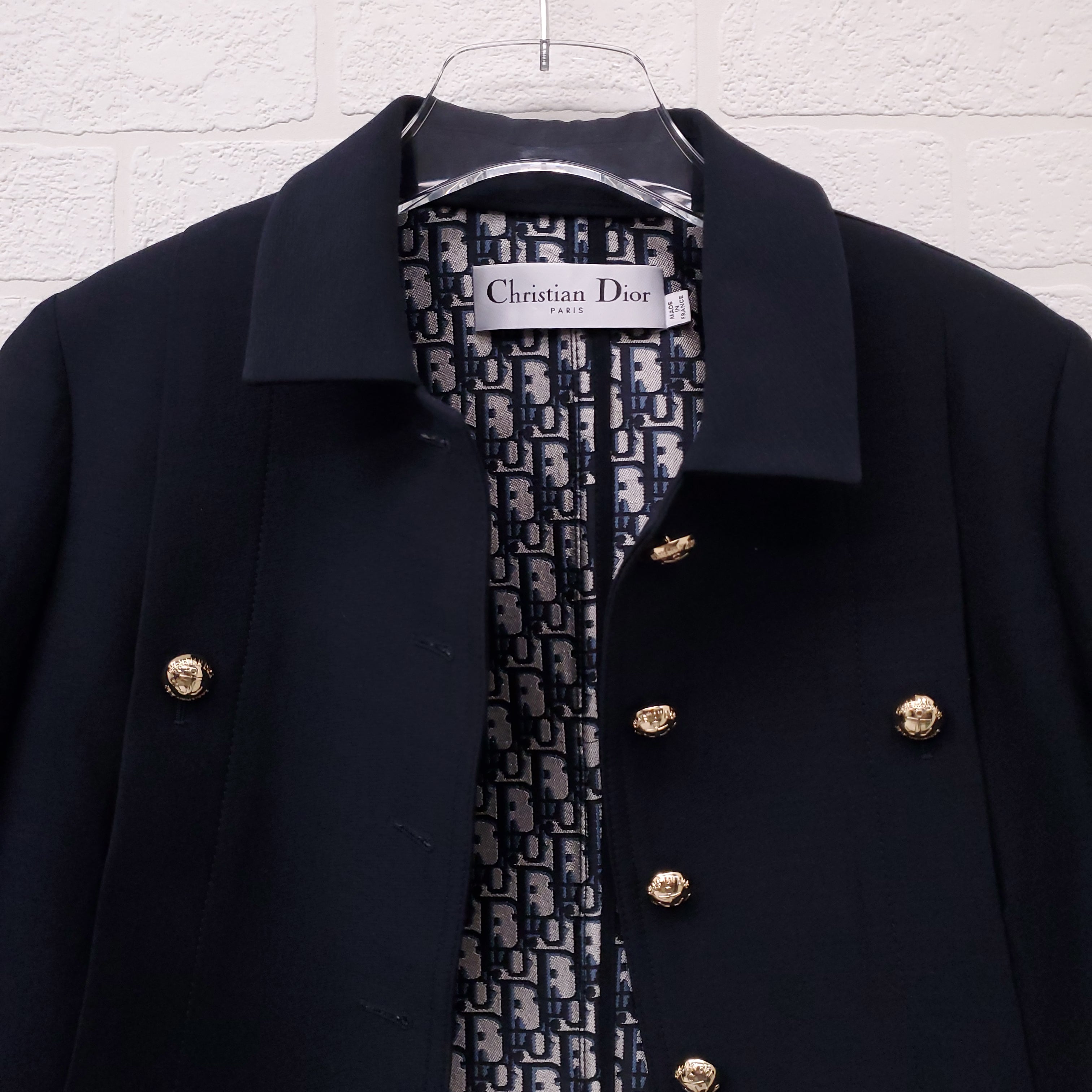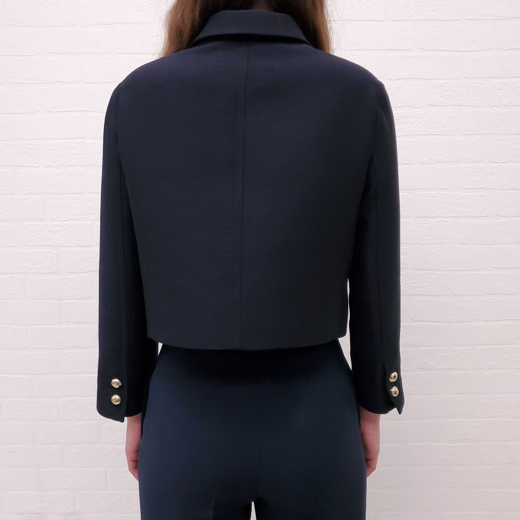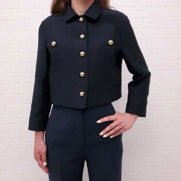DIOR NAVY CROPPED JACKET WITH LOGO INTERIOR AND NAUTICAL BUTTONS - SIZE 4